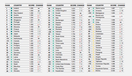 Im Gegensatz dazu halten sich mehrere europäische Länder weiterhin an der Spitze des Rankings: