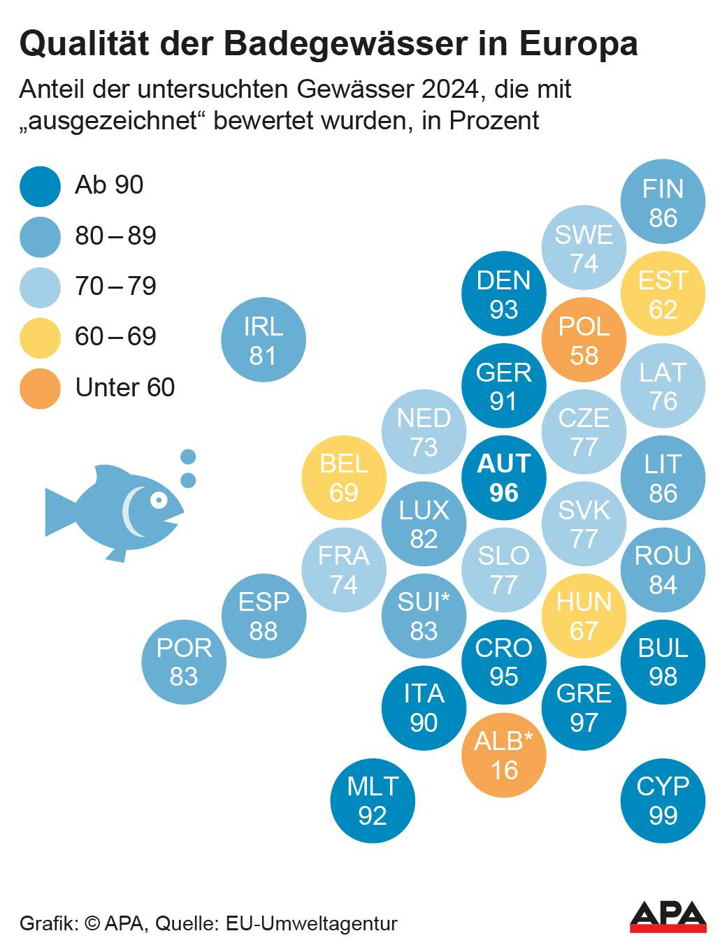 Österreich im Badegewässer-Ranking nur auf Platz vier