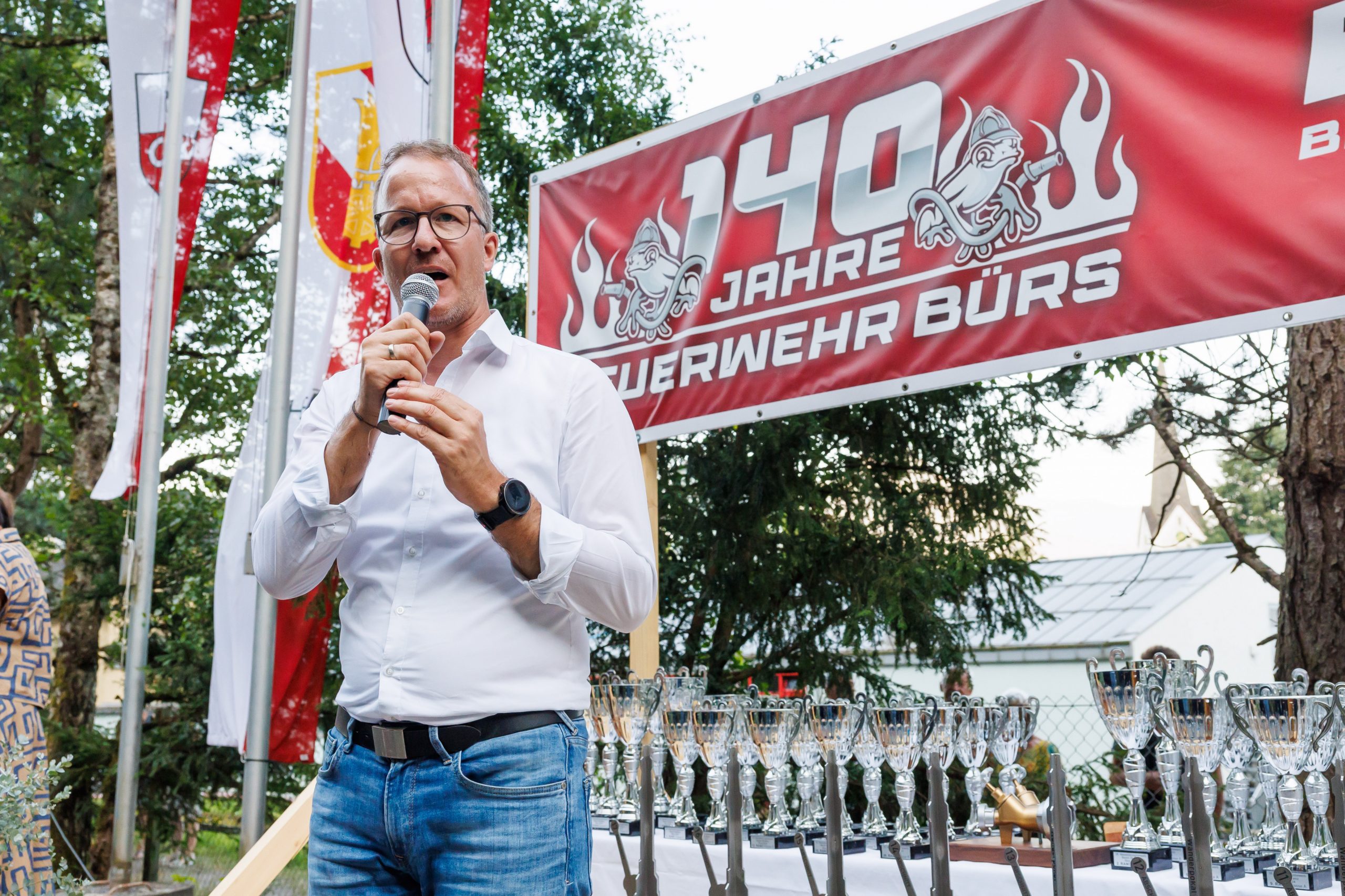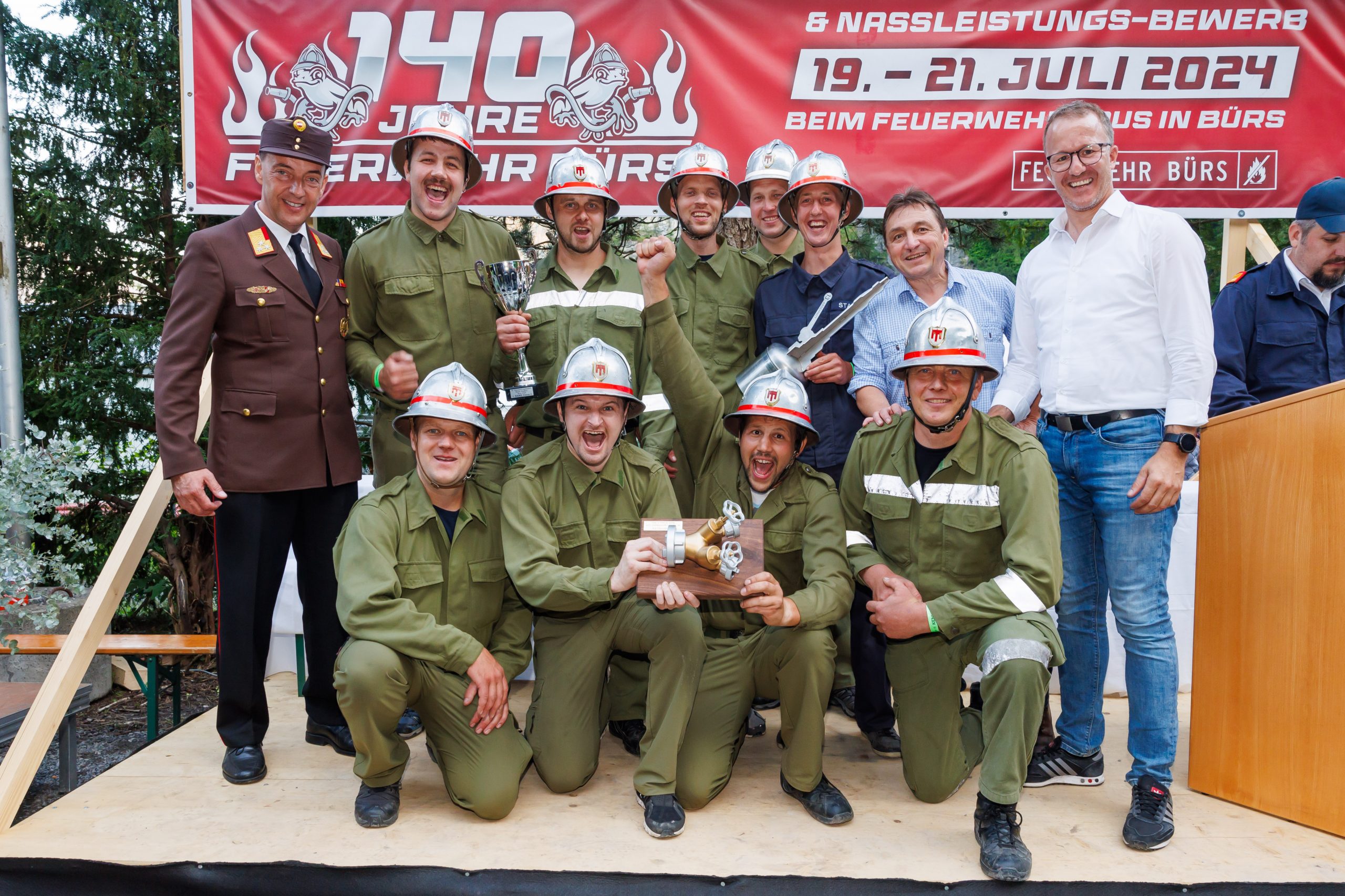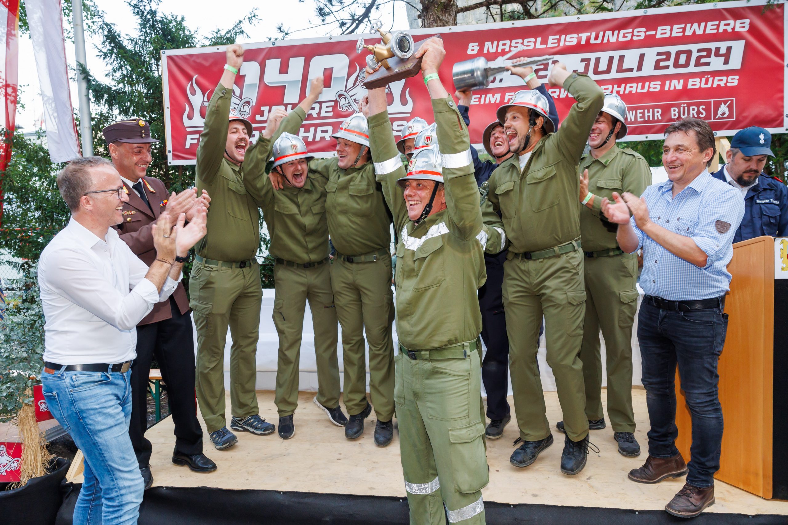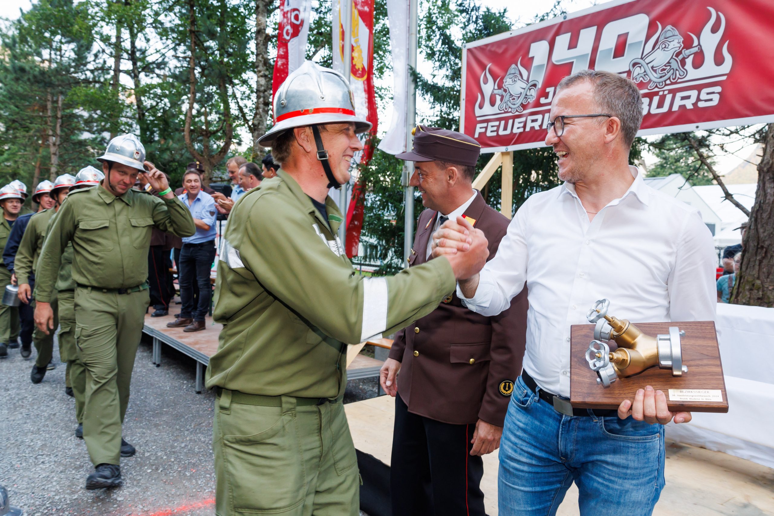 Am zweiten Festtag fanden die 38. Nassleistungsbewerbe des Bezirks Bludenz statt. 68 Bewerbsgruppen kämpften dabei freundschaftlich um den „Goldenen Verteiler“, bevor die Feierlichkeiten mit dem heutigen Festumzug ihren würdigen Abschluss fanden. Die bei den Bewerben gezeigten Leistungen hätten einmal mehr die Professionalität der heimischen Feuerwehren unter Beweis gestellt, waren sich Landeshauptmann Markus Wallner und Sicherheitslandesrat Christian Gantner einig. Sie gratulierten der Siegergruppe und dankten den Freiwilligen für ihren Einsatz.