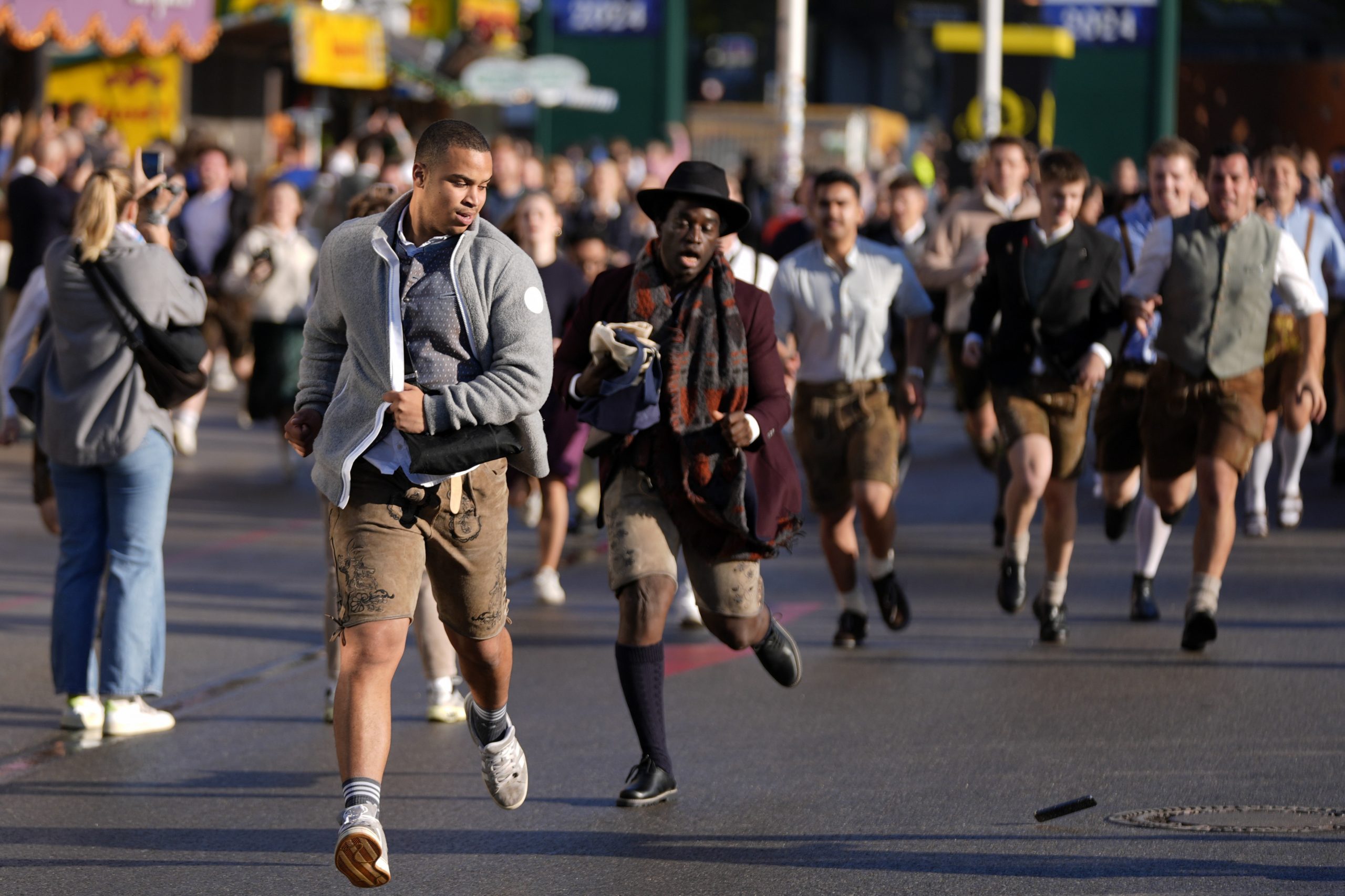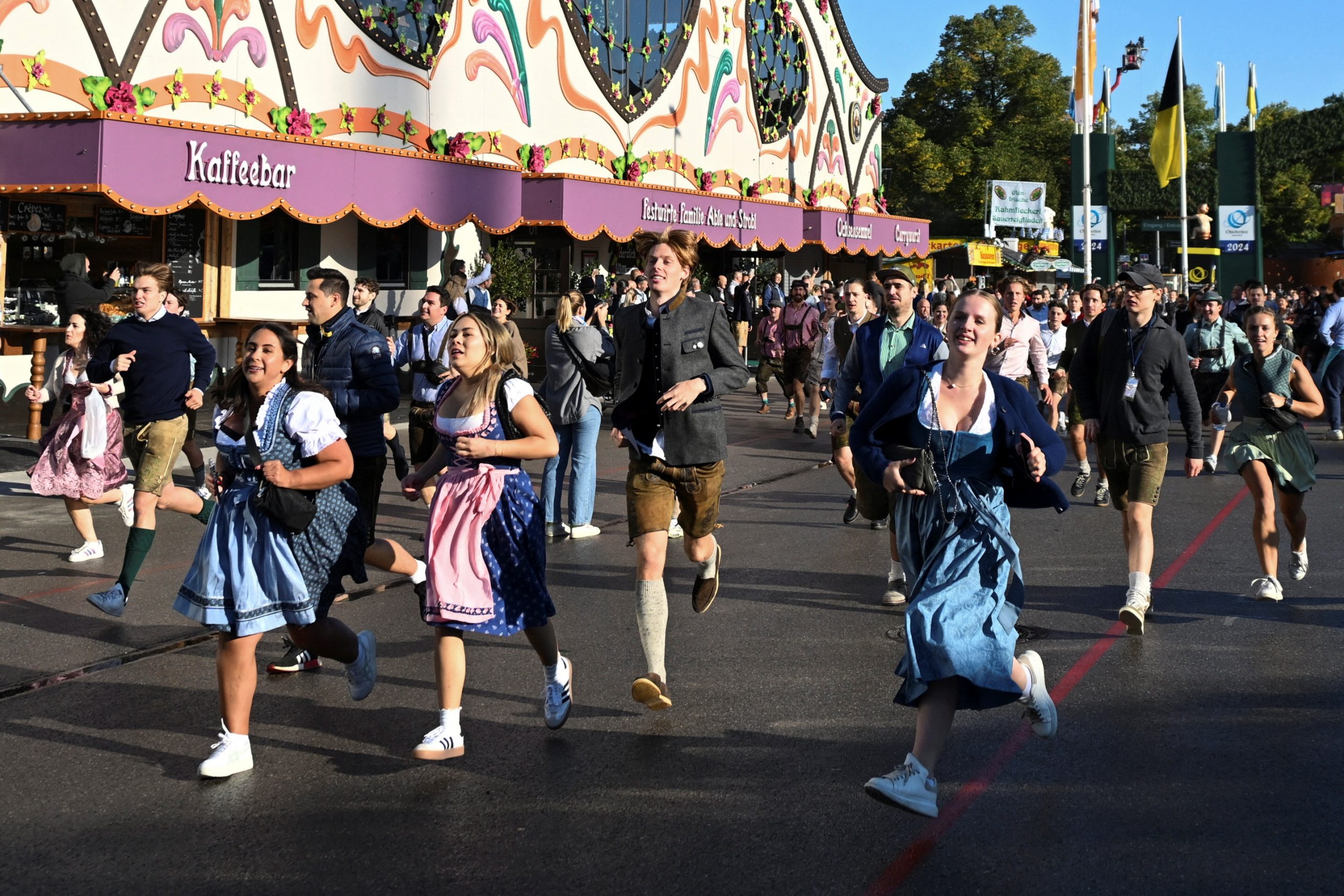 Zuvor waren bei sonnigem Wetter die Wiesnwirte Richtung Festgelände aufgebrochen. In Kutschen zogen sie, begleitet von Blasmusik und Brauereigespannen, durch die Münchner Innenstadt zur Theresienwiese. Tausende säumten die Straßen, um den Einzug als ersten Höhepunkt des Fests zu verfolgen.