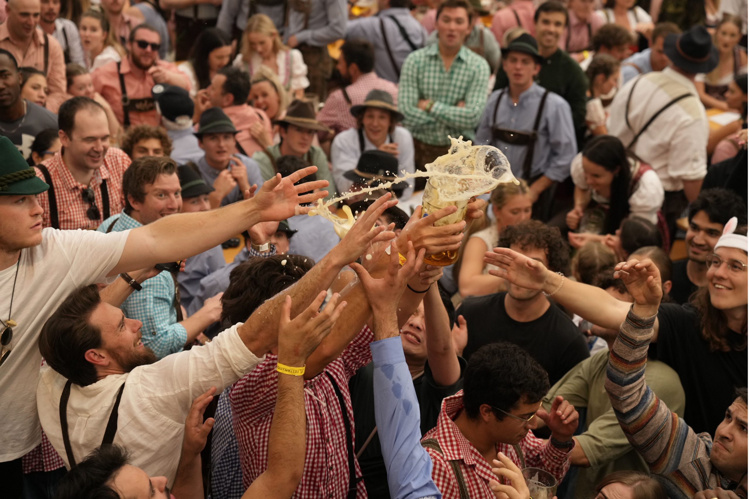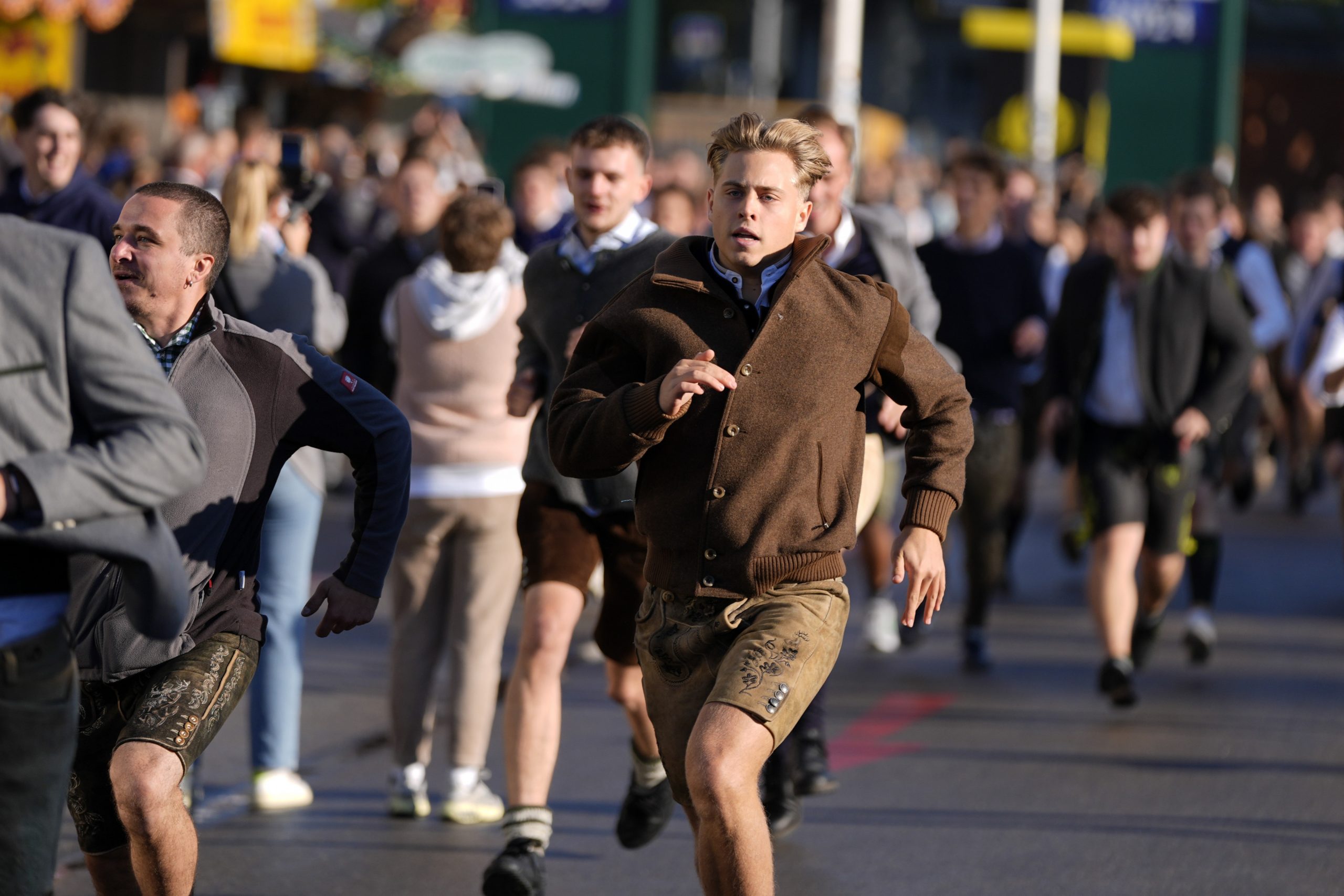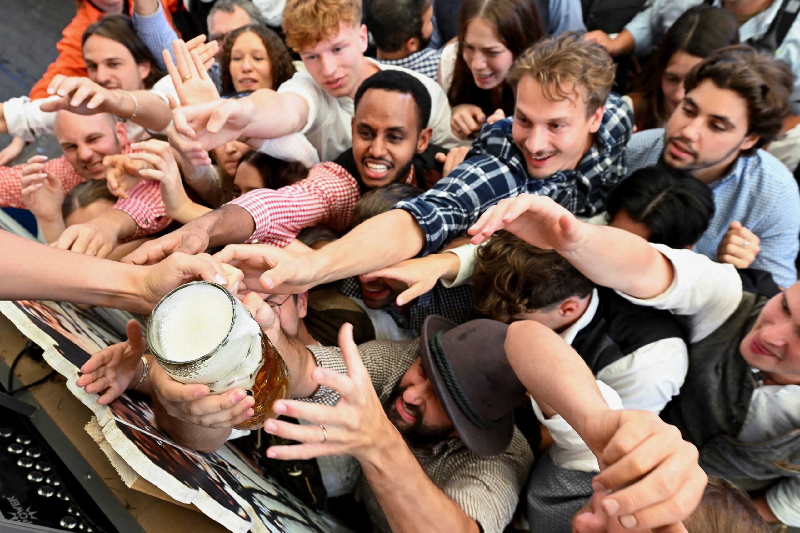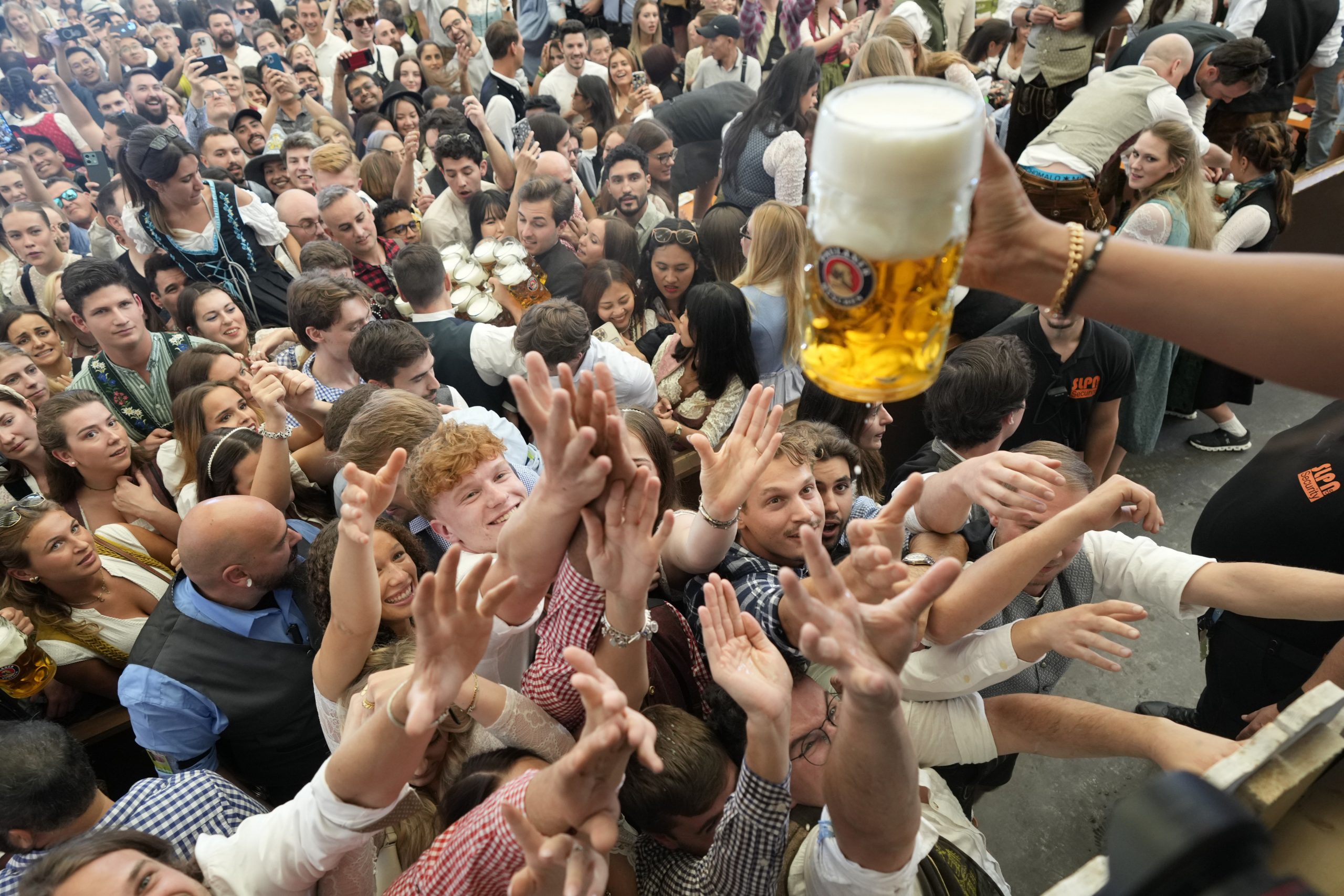 - Oktoberfest beginnt, Besucher stürmen Bierzelt