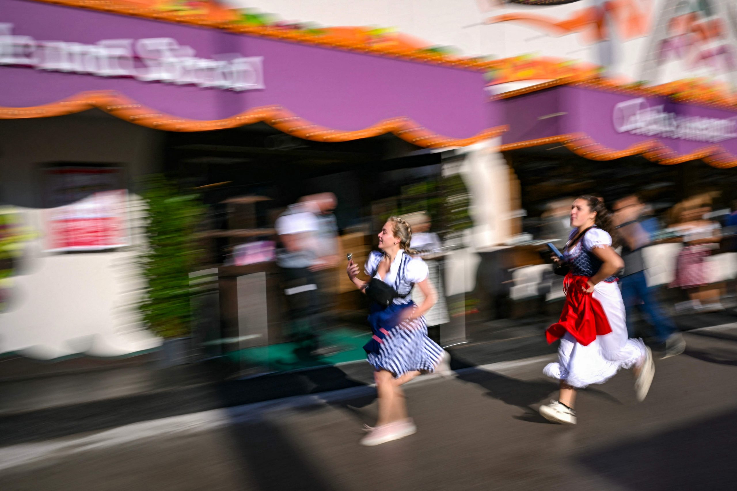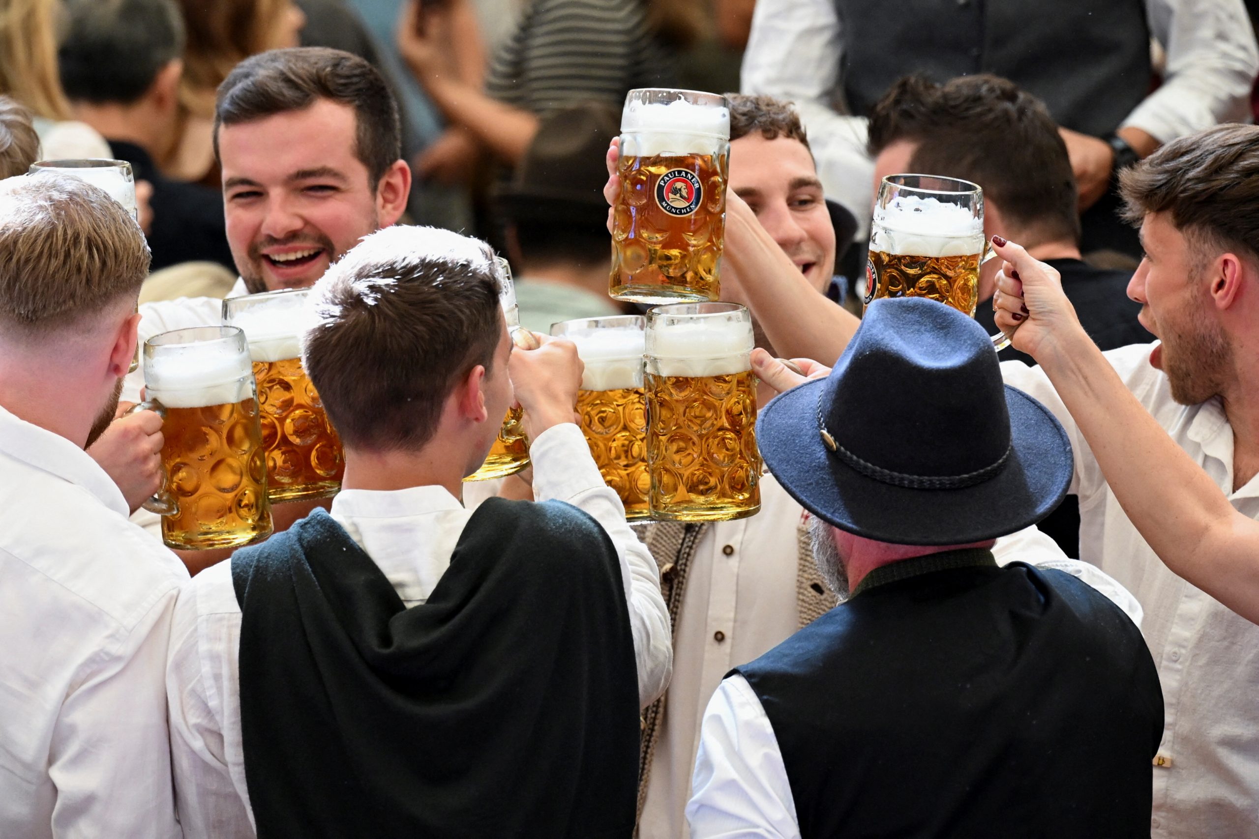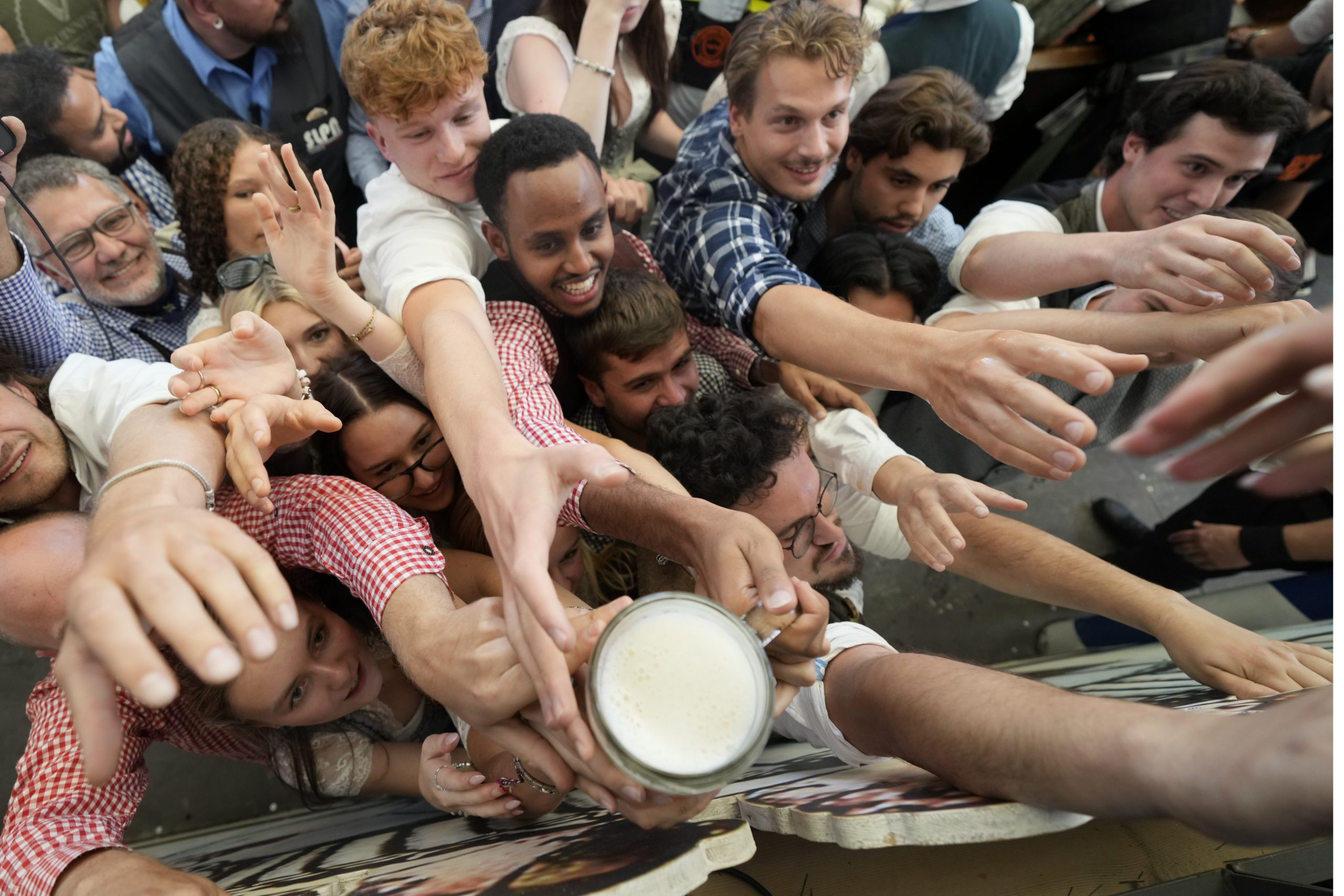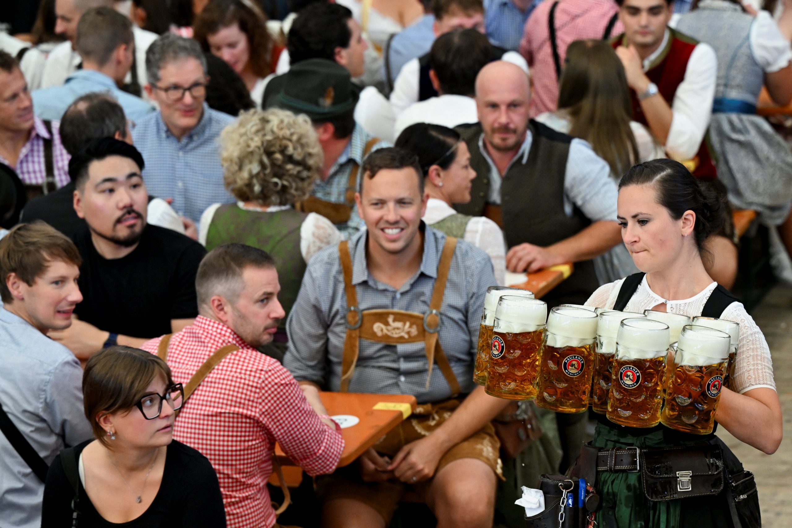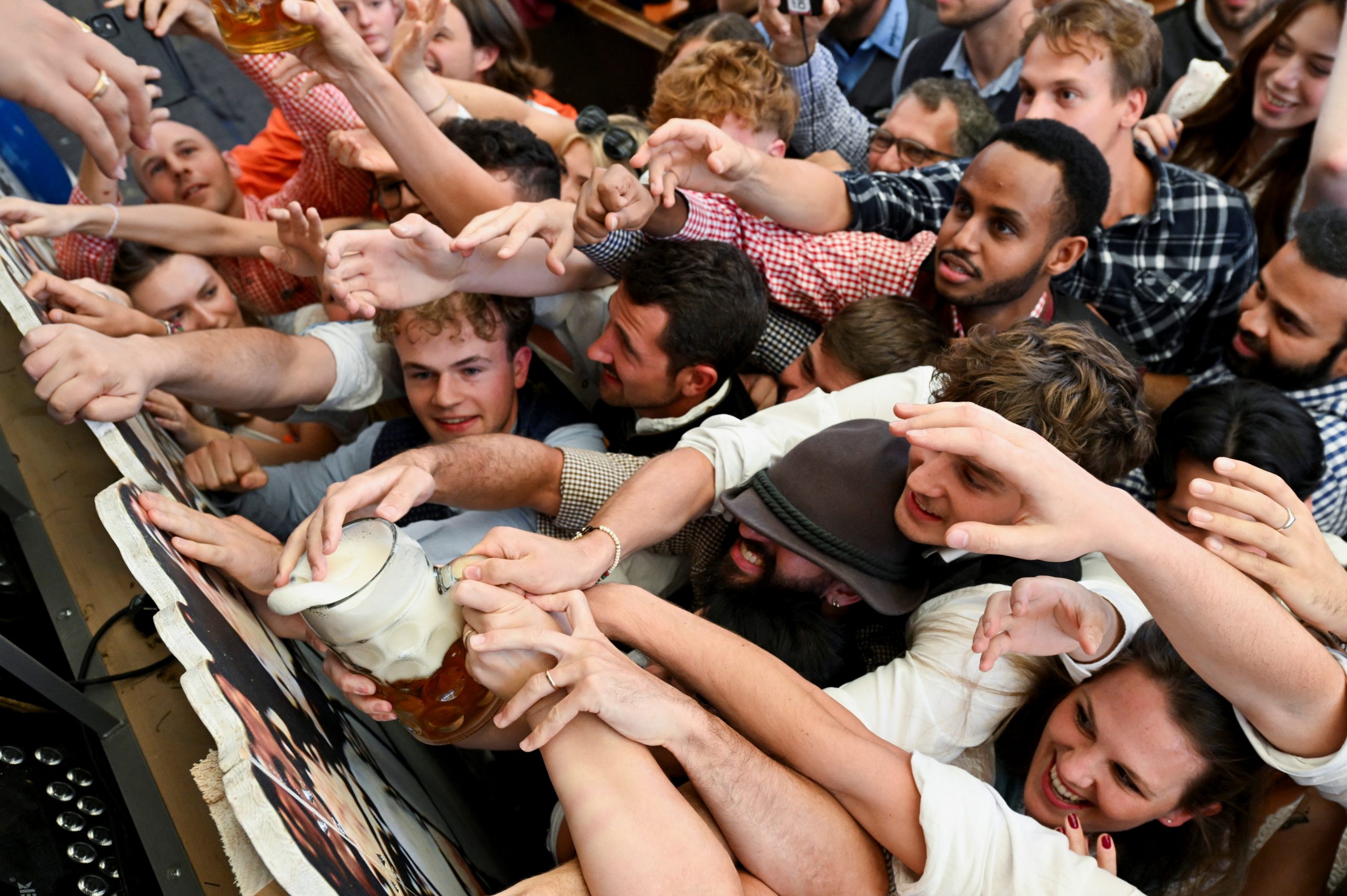 - Oktoberfest beginnt, Besucher stürmen Bierzelt