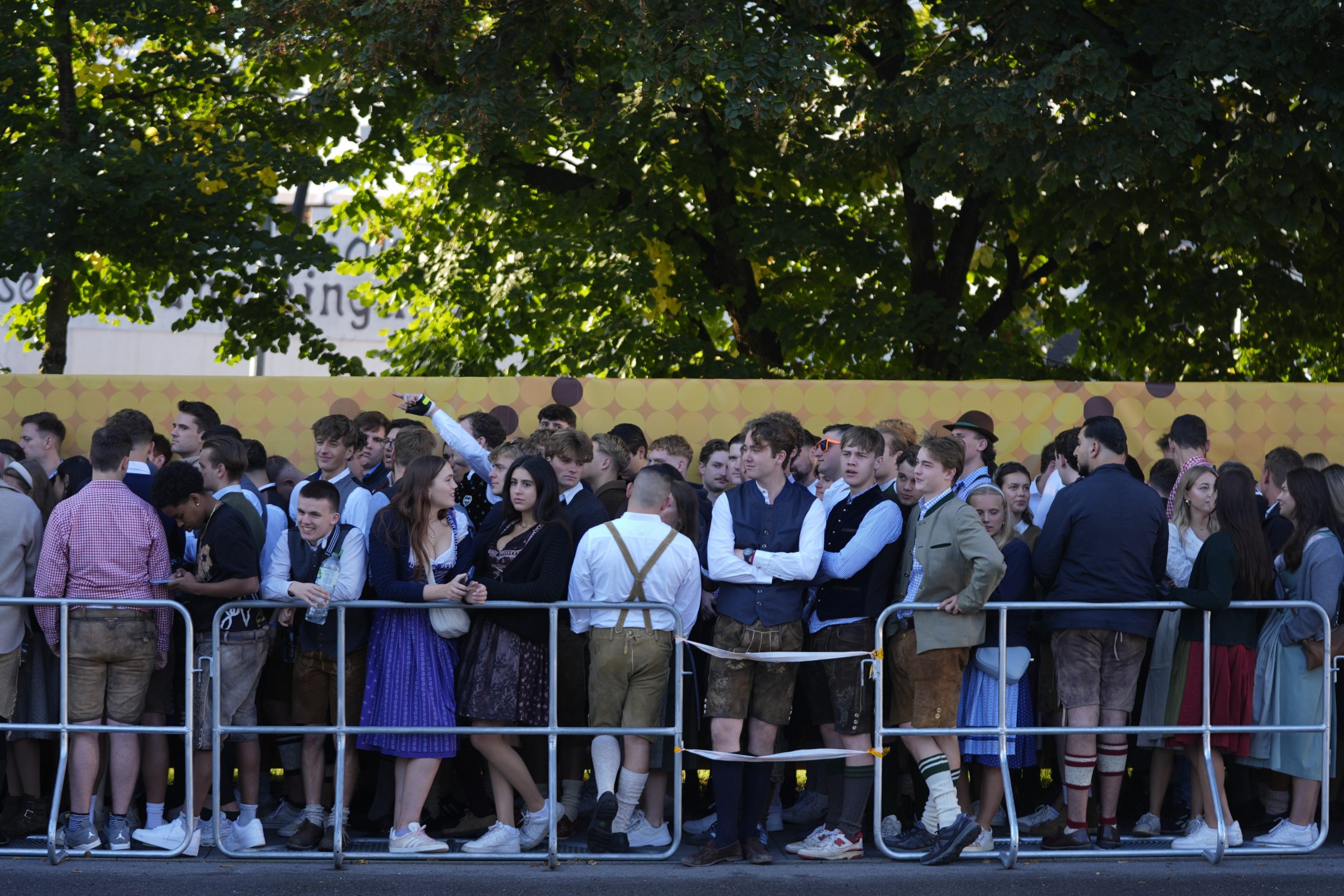 Schon am frühen Morgen hatten die Ersten gewartet, manche mit Decken, Thermoskanne und Kaffee, andere mit Bier. Die Wiesngäste müssen sich allerdings noch drei Stunden gedulden, ehe sie in München ihr erstes Wiesnbier bekommen.