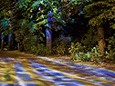 Das weltweit neue und erstmals in Wien installierte Lichtsystem "Painting the Night", taucht Bäume und Wege in buntes Licht.