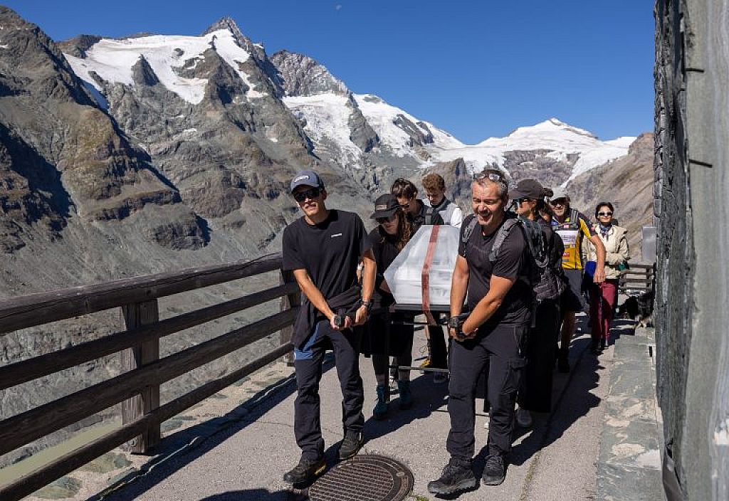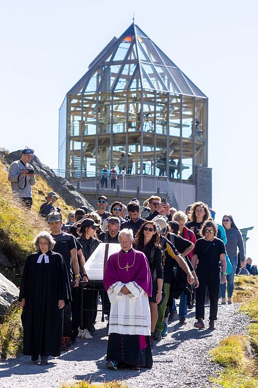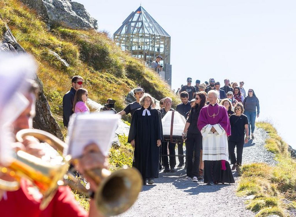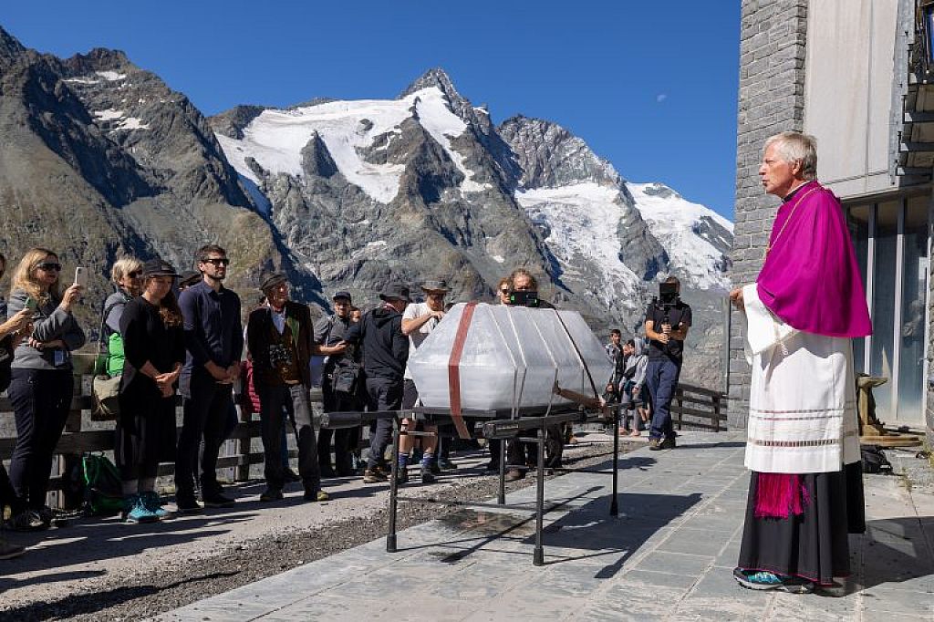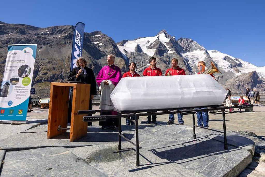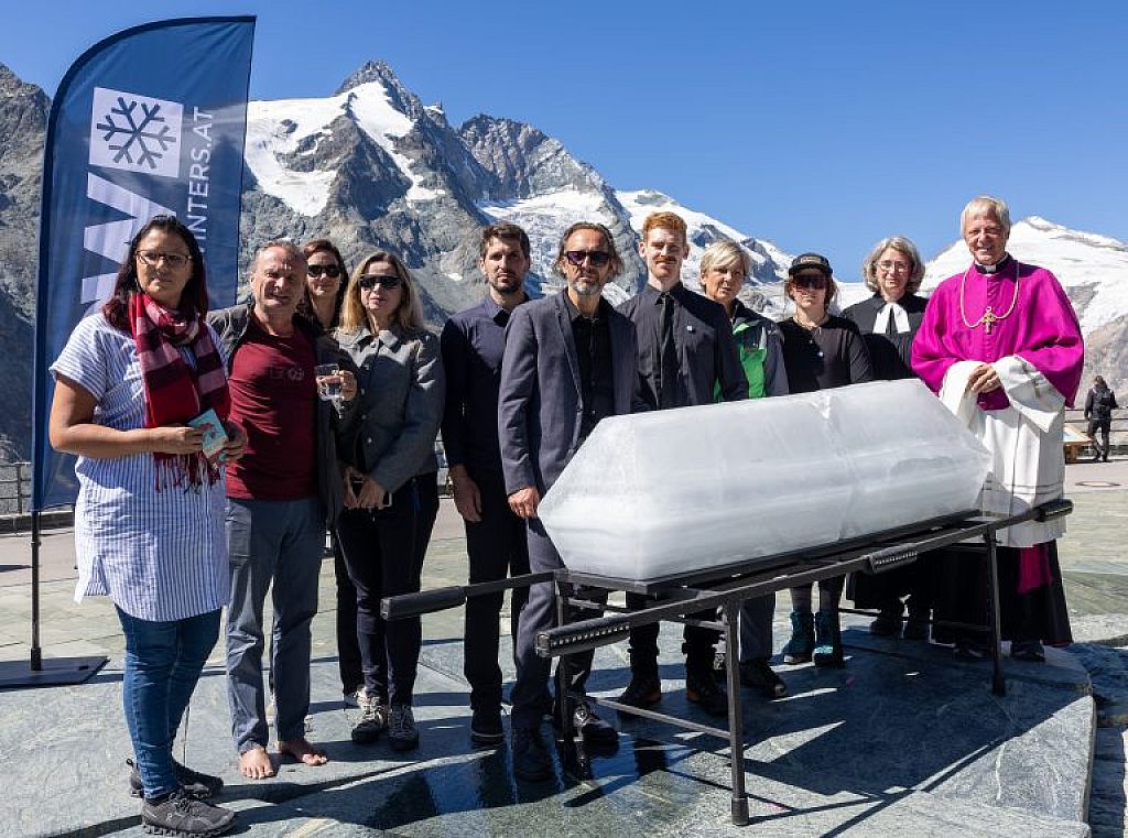 Aus diesem Grund wurde auf der Franz-Josefs-Höhe in Heiligenblut unter Beteiligung der katholischen und der evangelischen Kirche und mit zahlreichen "Trauergästen" ein Sarg aus Eis des Künstlers Max Seiwald zu Grabe getragen und von Bischofsvikar Engelbert Guggenberger und der evangelischen Pfarrerin Margit Leuthold "beerdigt".