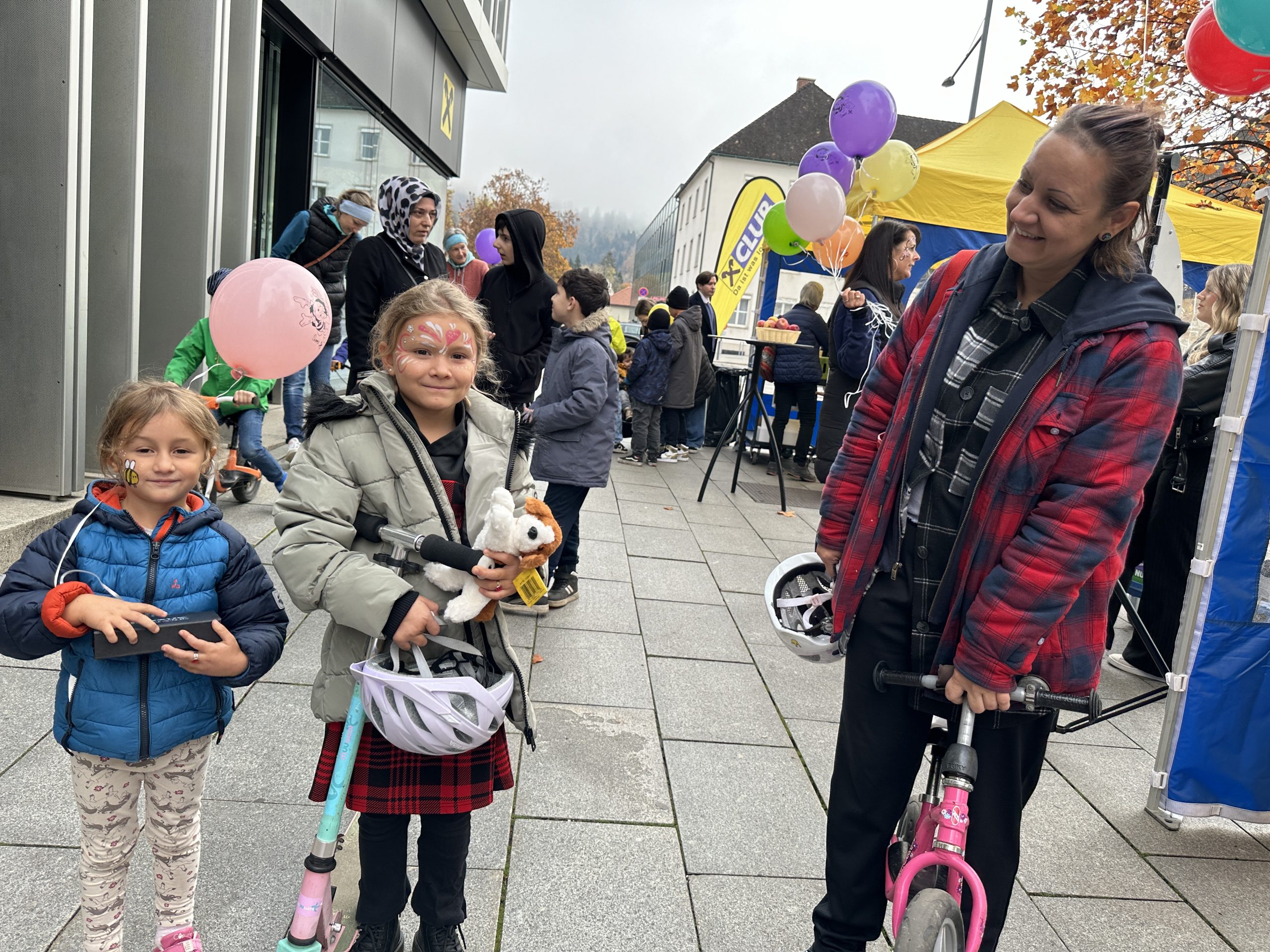 Auch bei der Bawag trudelten immer wieder Kinder mit ihren Eltern ein und holten sich ein Geschenk und einen Luftballon ab. Für den kleinen Hunger gab es vor der Sparkasse für Bankkunden Popcorn. Neben Luftballons und Wasserbällen, die die Kinder mitnehmen konnten, verteilte die Bank auch aufblasbare Luftgitarren.