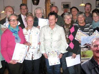 Bei der ordentlichen Jahreshauptversammlung der mitgliederstarken Ortsgruppe Hinterwald, die im Hotel Engel in Mellau stattfand, wurde Walter Winsauer aus Mellau einstimmig zum neuen Obmann gewählt. Die Ehrengäste, allen voran Landesobmann Erich De Gaspari, Ehrenobfrau Herma Wüstner, Vorderwald-Obmann Othmar Moosbrugger, Mittelwald-Obfrau Elisabeth Greber und Landessekretär Bruno Wüstner waren von der guten Stimmung im vollbesetzten Saal angetan. Es wurden viele Informationen zur Pensionserhöhung, Pflegegeld, Heizkostenzuschuss und andere Sozialrechts-Themen gegeben. Insgesamt 39 Mitglieder, (einige konnten alters- und gesundheitsbedingt nicht anwesend sein), wurden für ihre langjährige treue Zugehörigkeit zum Verband mit Abzeichen und Urkunden geehrt. Zum Abschluss wurde in geselliger Runde gefeiert und das köstliche kalte Büfett, das vom Verein spendiert wurde, gustiert. Obmann Winsauer und sein Team bereiten derzeit ein schönes Programm für 2010 vor. Mit der Wälder-Weihnachtsfeier am 20.12. in Hittisau und dem abwechslungsreichen Wintersportprogramm gibt es einen guten Start.