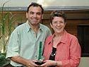 Bezirksvorstehrein Andrea Kalchbrenner überreichte Ende August den Penzinger Wirtschaftspokal an die Firma Mach-Holzbau.