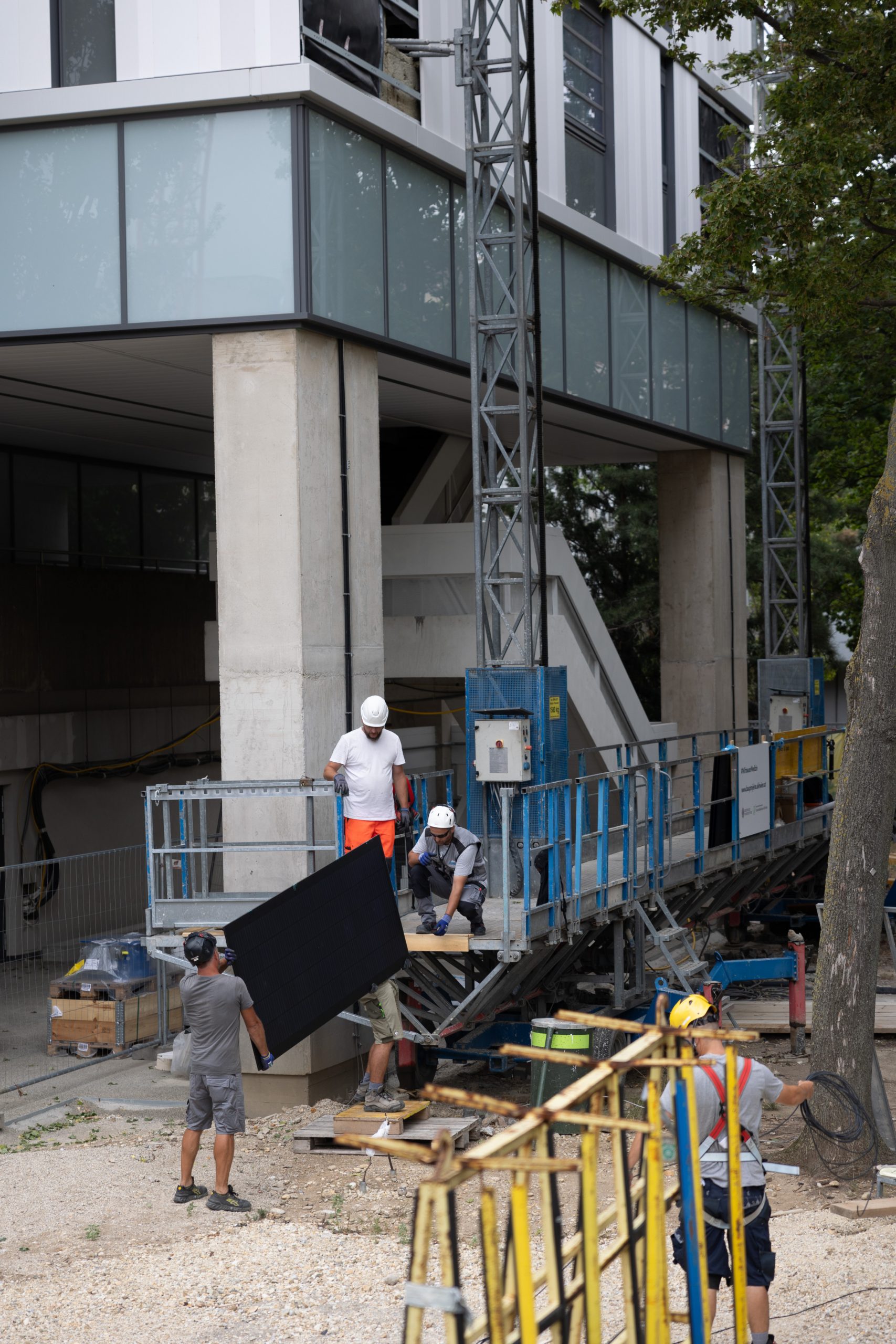 Das neu sanierte Bürogebäude am gemeinsamen Standort des Universitätsklinikums AKH Wien und der MedUni Wien in Wien-Alsergrund wird rund 25.000 kWh Grünstrom pro Jahr erzeugen. Dafür stattet Wien Energie die Südfassade des Hochhauses mit einer Photovoltaikanlage aus. Insgesamt 90 Solarmodule werden nach einer intensiven Planungszeit für die Konstruktion der insgesamt rund 12.000 Kilo schweren Module bis September 2024 vertikal angebracht.