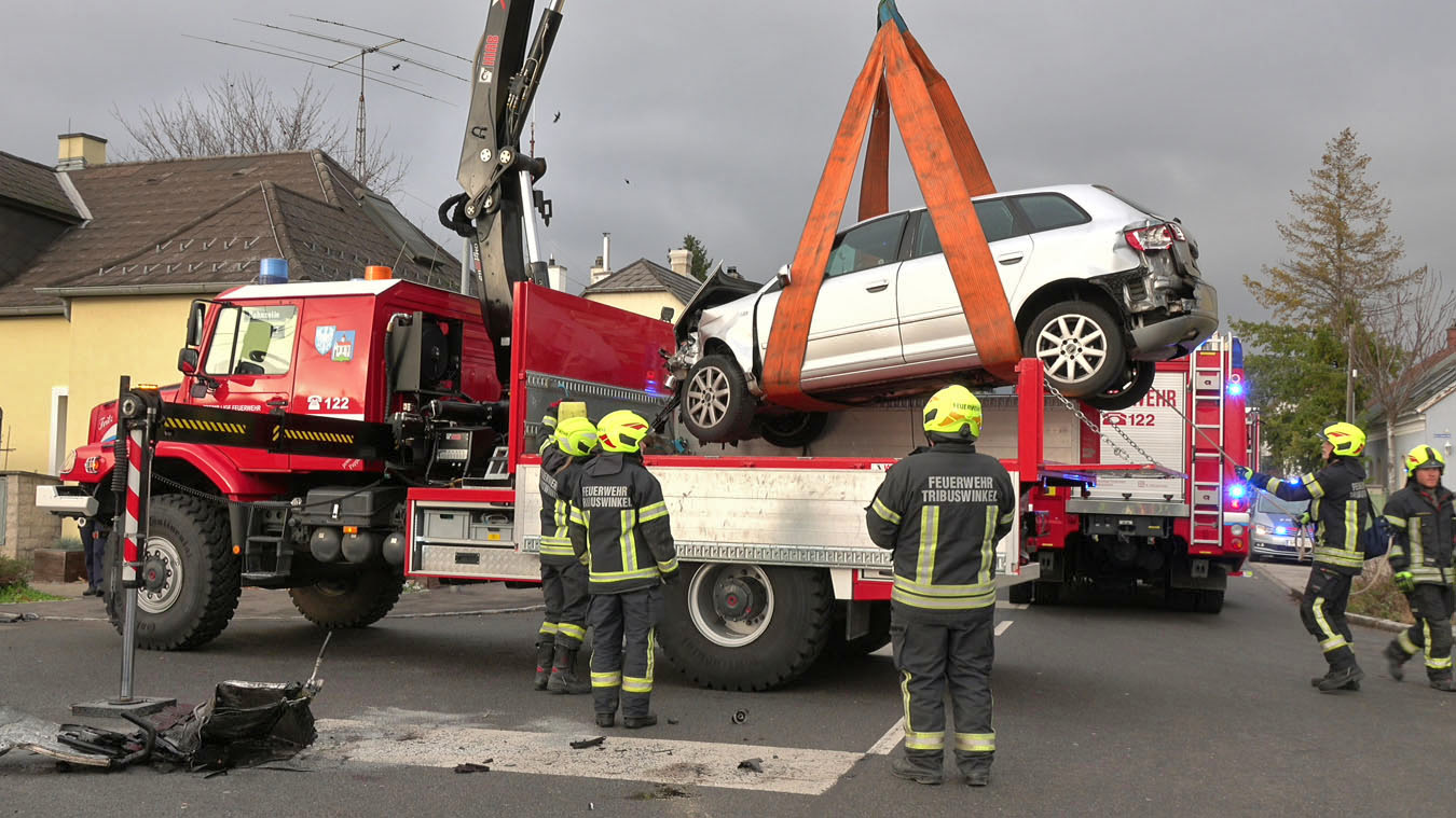 Ein Auto mit zwei Insassen kollidierte mit einem in Richtung Baden fahrenden Zug der Badner Bahn. Dabei wurde das Fahrzeug frontal erfasst und gegen eine Ampel geschleudert. Passanten riefen den Notruf 122 und meldeten den Unfall an die Feuerwehr. Als die Freiwilligen Feuerwehren Tribuswinkel und Pfaffstätten ausrückten, war unklar, ob Insassen eingeklemmt oder weitere Personen verletzt waren.