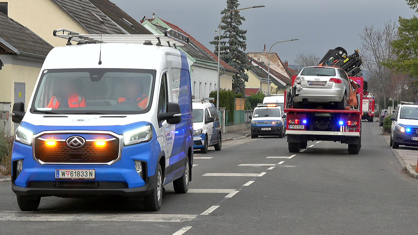 PKW nach Unfall mit Badner Bahn per Seilwinde bewegt