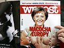 Drastisch reagierte in Polen das konservative Magazin Wprost. Auf dem Titelbild zeigte es als Foto-Montage eine barbusige Kanzlerin Angela Merkel, die die Zwillinge Lech und Jaroslaw Kaczynski an ihrem Busen nährt. Die Stiefmutter Europas stand auf dem Titel. In dem dazu gehörenden Bericht wurden Deutschland postkoloniale Reflexe vorgeworfen.