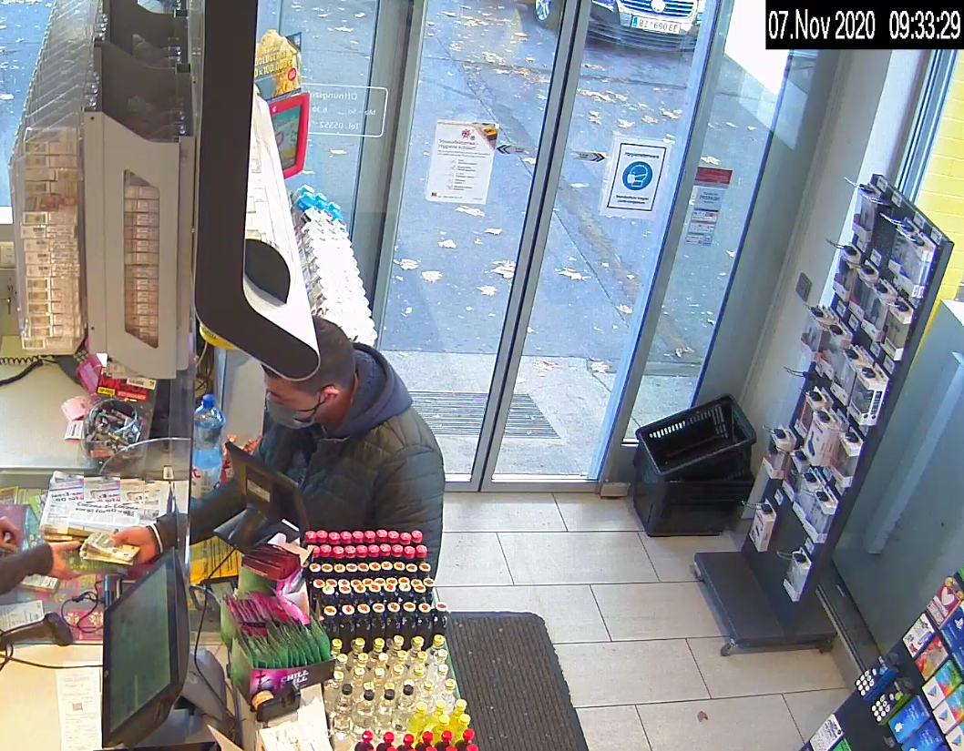 Beim Täter handelt es sich um einen 30 bis 35-jährigen Mann, 160-170 cm groß, südländisches Aussehen, kurze schwarze Haare, spricht schlecht Deutsch, grauer Mund-Nasen-Schutz, grüne gefütterte Jacke, blauer Kapuzensweater, dunkle Hose und dunkle Schuhe.