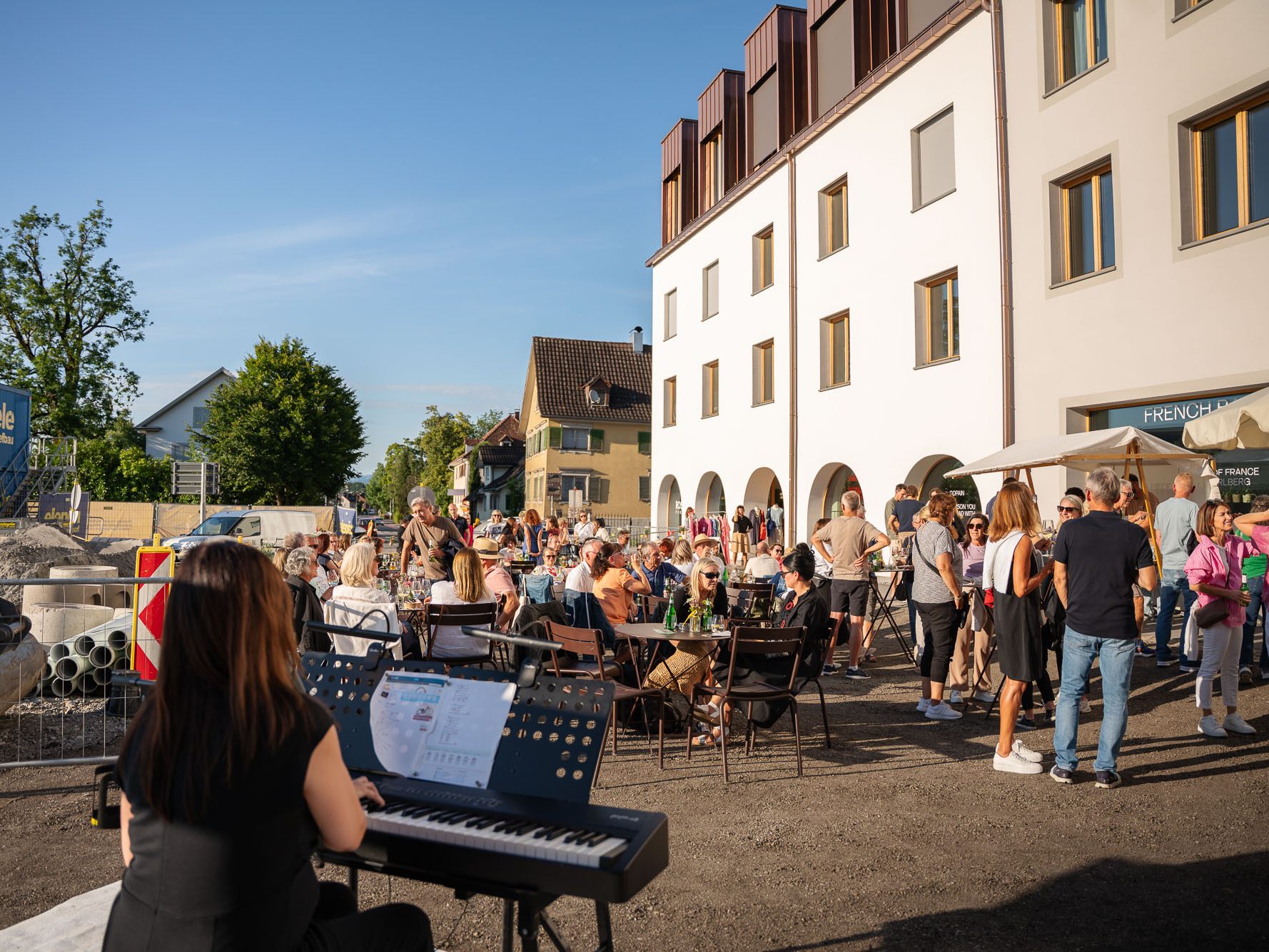 Vergangenen Donnerstag sorgte die Pianistin Isabella Pincsek für musikalische Glanzmomente – bei der „Special Edition“ der Hohenemser Lauschplätze entlang der Radetzkystraße – mitten auf der Baustelle.