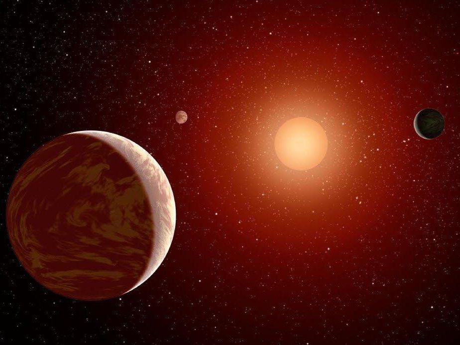Wolf 1061 ist ein roter Zwergstern, der deutlich kleiner und kühler ist als unsere Sonne. Die Astronomen entdeckten insgesamt drei Planeten bei dem roten Zwerg, die ihn jeweils in 5, 18 und 67 Tagen umkreisen. Sie haben mindestens 1,4 Mal, 4,3 Mal und 5,2 Mal soviel Masse wie unsere Erde.