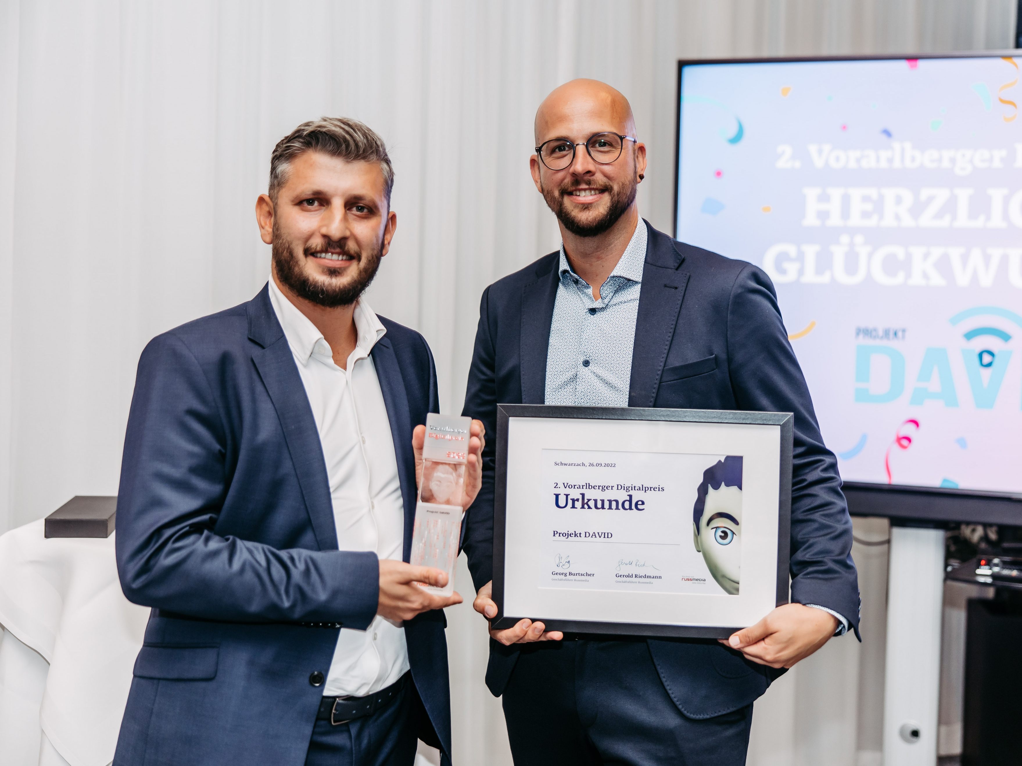 „Das Projekt DAVID ist besonders spannend, da es den Nerv der Zeit trifft. Jedes Unternehmen hat dasselbe Problem: Mitarbeiter:innen und besonders Lehrlinge finden. Mit dieser digitalen Wissensplattform können sich die Unternehmen vernetzen und sich gegenseitig unterstützen. Dies wurde erst dank den neuen Technologien und vor allem dank dem Engagement von Ibrahim und Mathias möglich,“ erklärt Georg Burtscher, Geschäftsführer Russmedia. „Das Prinzip ist einfach: Lehrlinge und Lehrlingsausbildner:innen erstellen Lernunterlagen, die für die Lehrlinge verständlich sind und ihnen beim Lernen helfen. Wir müssen unsere Lehrlinge unterstützen, denn diese sind ein besonders wertvolles Gut. Das Projekt DAVID hat den Vorarlberger Digitalpreis verdient, da die Initiatoren einen zukunftsweisenden Weg einschlagen. Sie setzen die neuen Technologien optimal ein, um eine der gegenwärtigen Herausforderungen zu bewältigen,“ so Burtscher weiter.