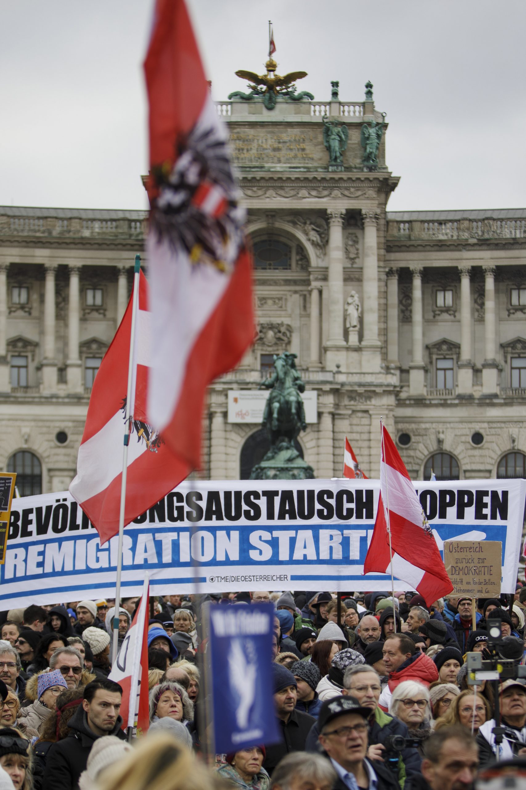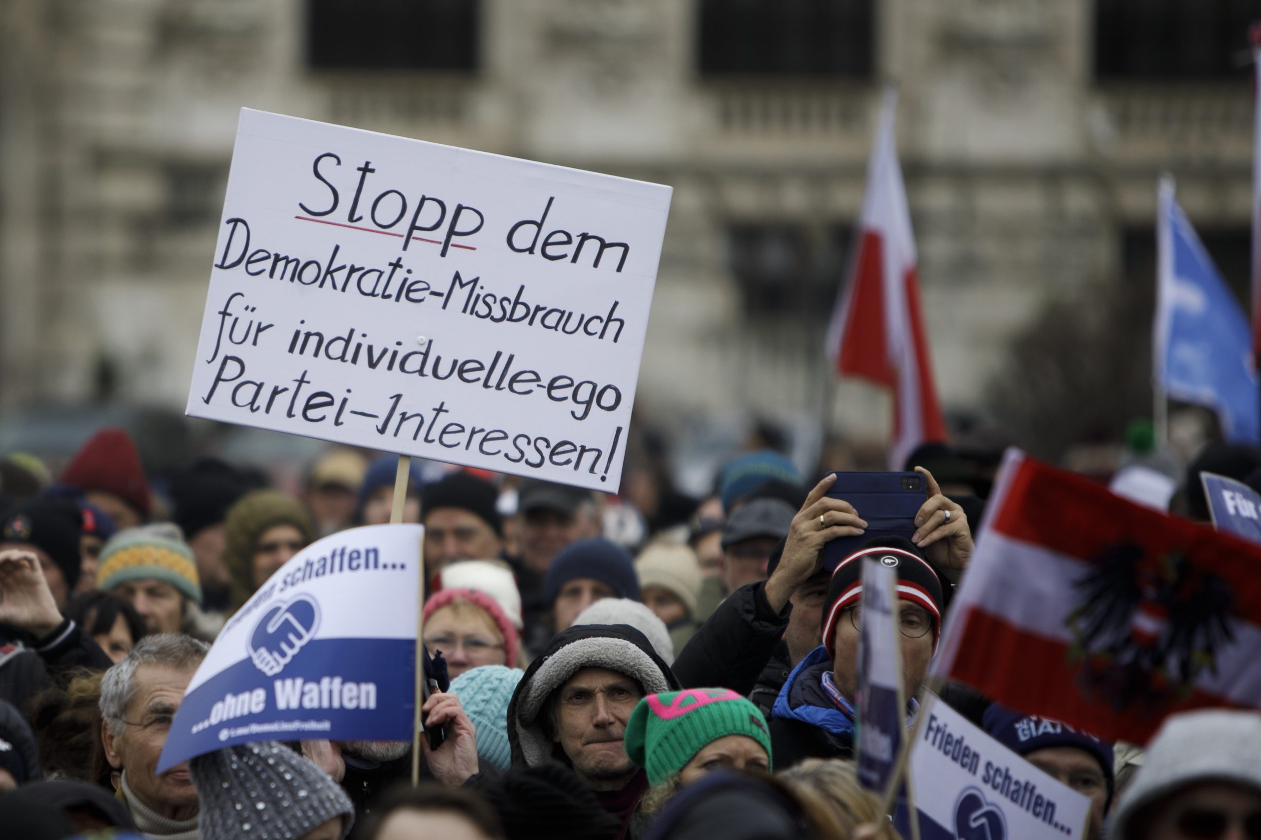 Die Demonstrantinnen und Demonstranten versammelten sich zunächst beim Erzherzog-Karl-Reiterdenkmal, um unter anderem ihren Unmut gegen die Nichtbeauftragung der FPÖ mit Regierungsverhandlungen durch Bundespräsident Alexander Van der Bellen kundzutun. Mehrere spontane Marschkundgebungen, die vom Heldenplatz ausgingen, wurden von der Polizei aufgelöst.