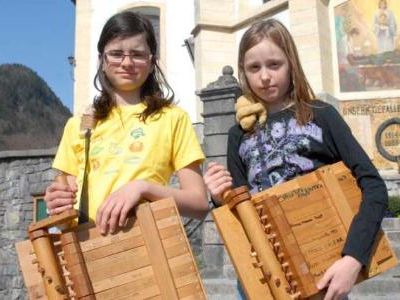 “Wir ratschen, weil die Glocken nach Rom geflogen sind”, weiß Sophia Draxl, die zu den jüngsten Ratscherinnen zählt. Wie die meisten ihrer Bekannten und Freunde, will sie auch im nächsten Jahr mit einem Lärminstrument von “Rätschadäta” Hubert Stüttler aus St. Anton im Montafon, einem gebürtigen Tschaggunser, an den beiden vorösterlichen Tagen “hämmernd” durchs Dorf ziehen.