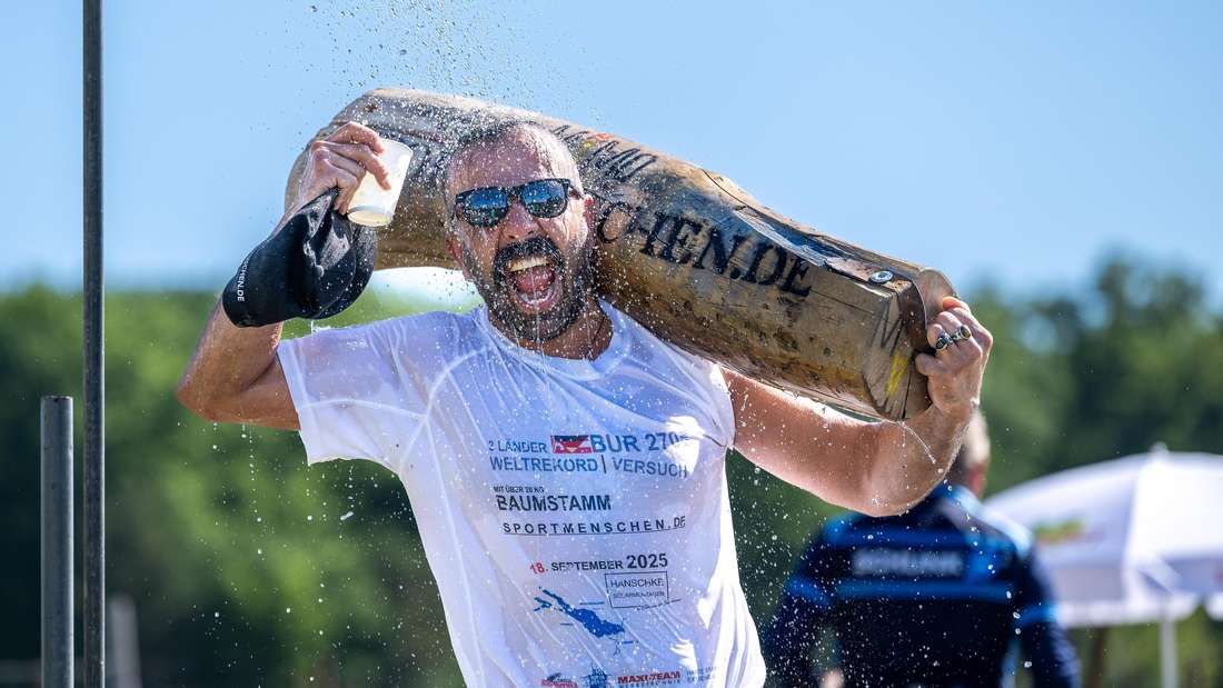 Rekord ist geglückt: So schnell lief "Mamo" mit seinem Baumstamm um den Bodensee
