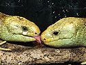 Die Skinke (Scincidae), auch Glattechse genannt, gehören zur Gruppe der Reptilien. Der Name Wickelschwanz-Skink bezieht sich auf den Greifschwanz, mit dem sie sich von Ast zu Ast hanteln. Sie erreichen sechzig Zentimeter Körperlänge und sind lebendgebärend. Die Jungen sind bei der Geburt mehr als zwanzig Zentimeter groß. Wickelschwanz-Skinke sind reine Pflanzenfresser und leben in Familiengruppen. Ihre Heimat sind die bei Neuguinea gelegenen Salomonen-Inseln.