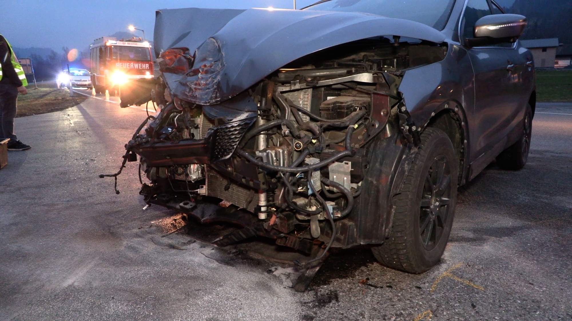 Am Pkw entstand Totalschaden, der Kleinbus wurde erheblich beschädigt. Über den genauen Unfallhergang liegen noch keine Informationen vor.