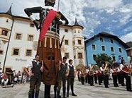 Der 6,20 Meter große und 105 Kilogramm schwere Samson im Tamsweg ist seit 1635 dokumentarisch belegt und damit der älteste im Lungau. Der kräftige Bursche, der ihn trägt, muss ein Junggeselle sein, genauso wie die vier Träger, die ihn beim Stehen abstützen, und jene Männer, die in das Zwergenpaar schlüpfen. Sie stehen dem Riesen als Fruchtbarkeitssymbole zur Seite. “Samsons Gewand wird alle 15 bis 20 Jahre erneuert, das Aussehen bleibt aber unverändert”, schilderte Peter Schitter, Obmann der Samson-Gruppe. Bis zu sechsmal im Jahr schreitet der große Held zu Fronleichnam oder bei anderen Anlässen – wie im Sommer das Waldfest – vom Marktplatz weg durch die Gassen und tanzt vor honorigen Persönlichkeiten einen Walzer.