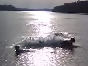 Der arme Hundehalter musste mit ansehen wie sich das Krokodil seinen geliebten Vierbeiner schnappte.