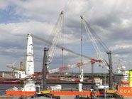 Schwerlast Offshore Kran MTC 78000 » Durchmesser, Drehkranz: 9 Meter » Gewicht, Drehkranz: 70 Tonnen » Ausleger: 87 Meter » Maximale Traglast: 1600 Tonnen bei 35 m Ausladung » Drehbarkeit: 360 Grad » Eigengewicht: 1420 Tonnen (ohne Grundsäule)