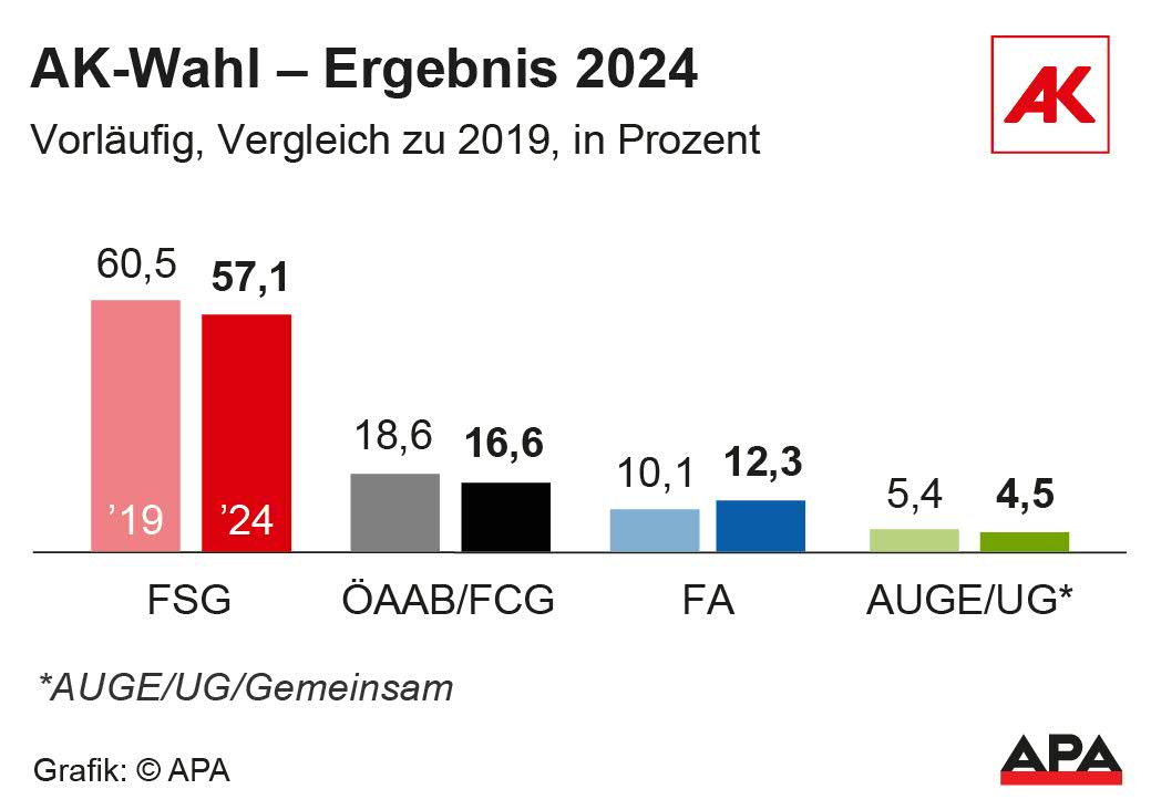 AK-Wahl 2024: FSG mit rund 57 Prozent deutlich stärkste Kraft