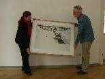 Alexander Riffler hängt mit seiner Gattin die ersten Bilder auf. Manfred Bauer