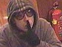 ca. 20-25 Jahre alt, ca. 170 cm, schlank, rundes Gesicht, dunkler Teint, war bekleidet mit einer dunkelgrünen Kapuzenjacke (helle Streifen auf Kapuze), blauer Jeanshose, dunklen Schuhen, schwarzen Handschuhen, maskiert mit einer Sonnenbrille mit dunklen Gläsern.