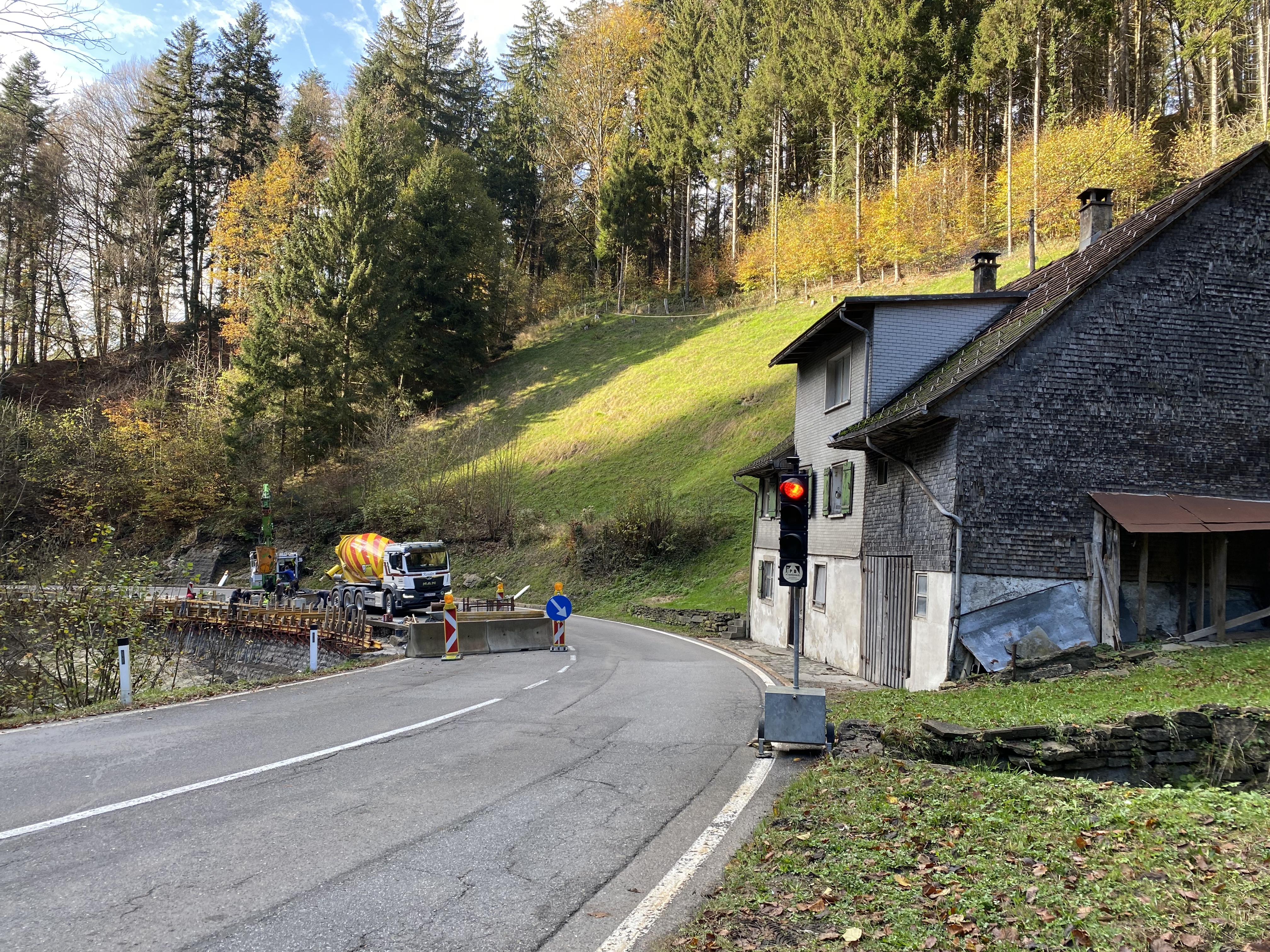 Die Arbeiten vor Ort laufen bereits seit dem 24. Oktober. Geplant ist, dass sie bis am 9. Dezember laufen. "Der genaue Fertigstellungstermin ist allerdings vom Liefertermin der Leitschiene abhängig", verdeutlicht Schwarzmann. "Wir sind auf jeden Fall bemüht, den Verkehr so früh wie möglich wieder freizugeben."