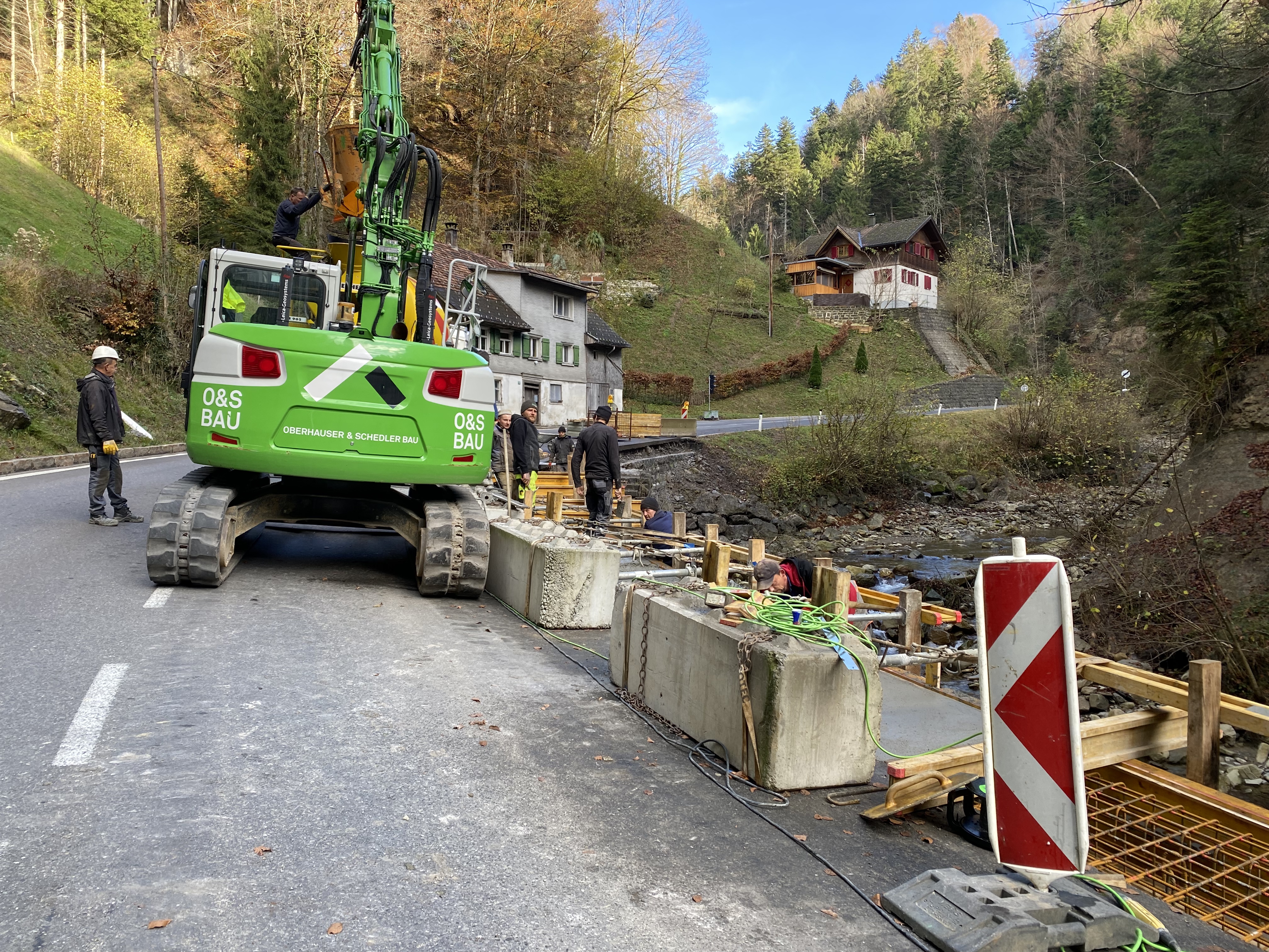 Derzeit gibt es auf der L7 Schwarzachtobelstraße eine Baustelle. Wo bis vor kurzem noch eine Mauer die Straße säumte, wird nun fleißig gewerkelt.