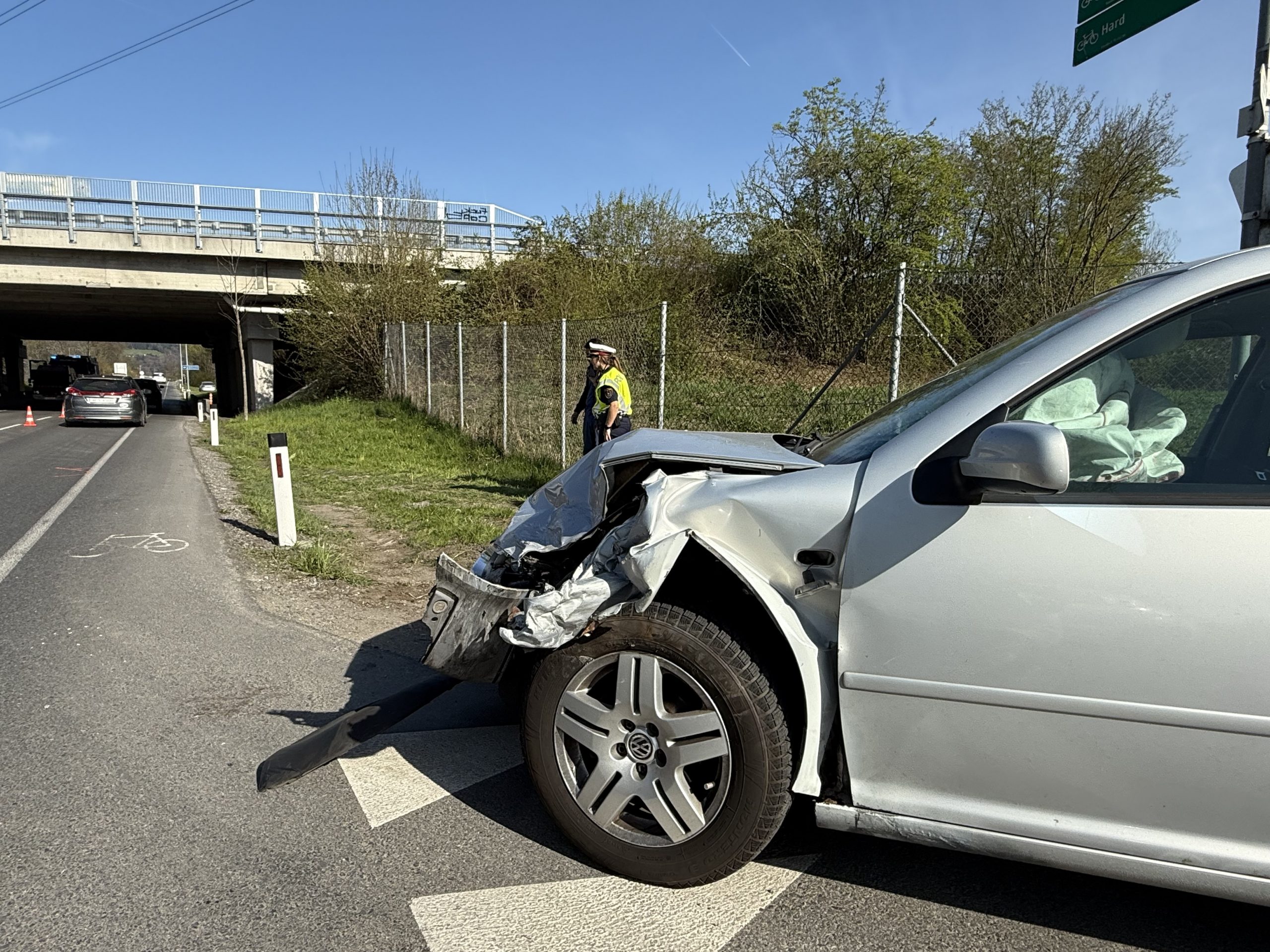Im Einsatz standen zwei Fahrzeuge der Feuerwehr Wolfurt, ein Rettungstransportwagen (RTW), ein Notarztteam sowie die Polizei. Beide Fahrzeuge wurden bei dem Unfall erheblich beschädigt.