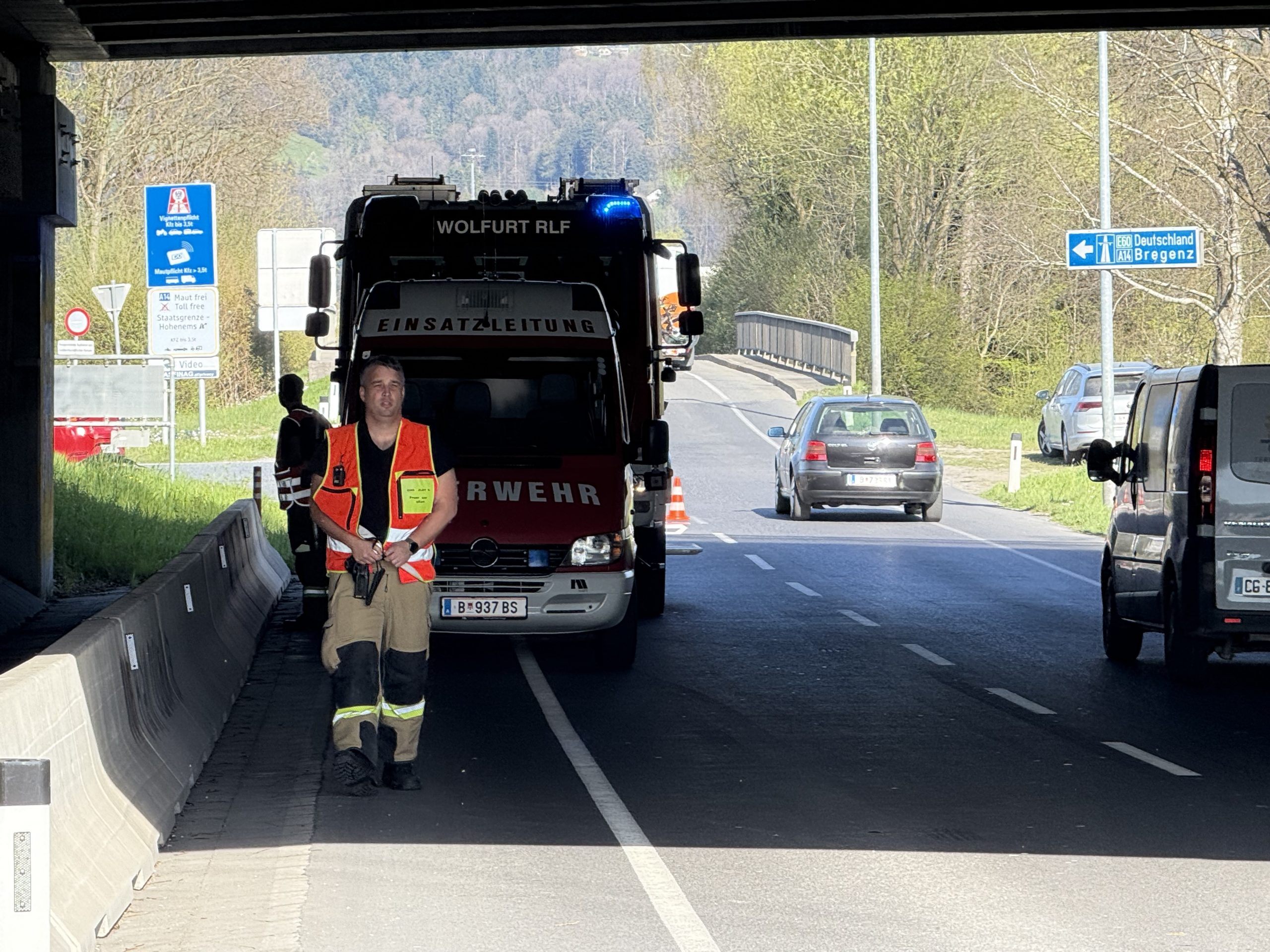 Die Unfallaufnahme machte eine Totalsperre notwendig: Sowohl die L41 als auch die A14-Abfahrt in Fahrtrichtung Tirol waren im Bereich der Unfallstelle vorübergehend für den gesamten Verkehr gesperrt.