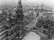 Auch an weitere spektakuläre Unfälle jener “Männer in den fliegenden Kisten” wird erinnert: So etwa an die Notlandung Gustav Haucks im Jahr 1933 direkt im Donaukanal, die gimpflich für die drei Insassen abging, jedoch über großen Schauwert verfügte. Seltene bzw. erstmals gezeigte Aufnahmen, teilweise stammen sie aus dem Photoarchiv der Polizei, erinnern nachdrücklich an die vielen unterschiedlichen Bemühungen in Wien, den Himmel, der einem Klischee nach voller Geigen hängen soll, auch dem Motorflug zu öffnen. So etwa erinnert eine Aufnahme aus dem Jahr 1952 an die erste Hubschrauberlandung der US-Armee auf dem Rathausplatz.