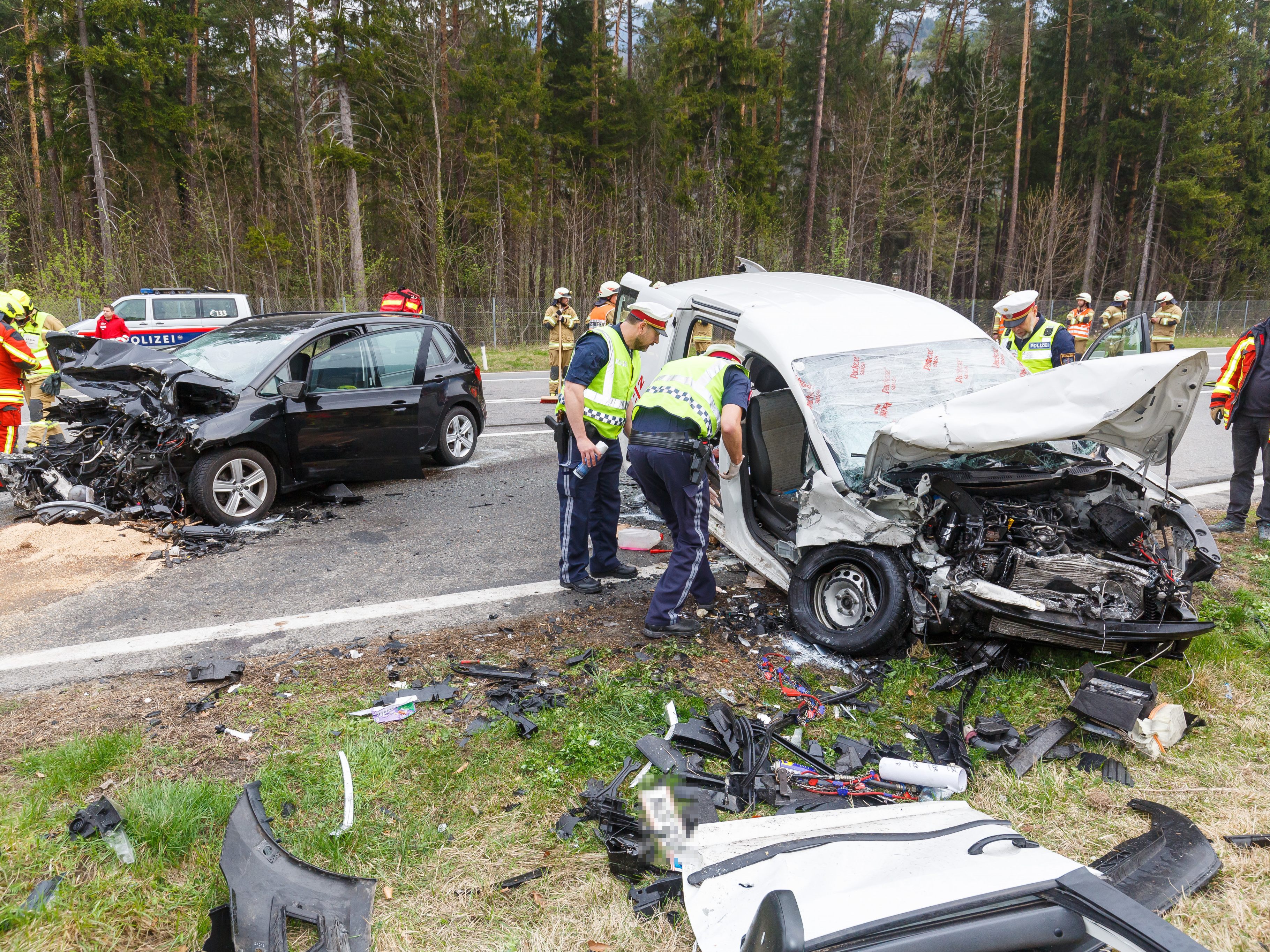 Nach dem Zusammenstoß kamen beide Fahrzeug im Bereich des Kettenanlegeplatzes zu stehen. Alle vier Insassen wurden unbestimmten Grades verletzt, wobei die Beifahrerin des deutschen Lenkers mit den Rettungshubschrauber ins LKH Feldkirch transportiert werden musste. Die anderen Beteiligten konnten mit dem Rettungswagen in die angrenzenden Spitäler gebracht werden.