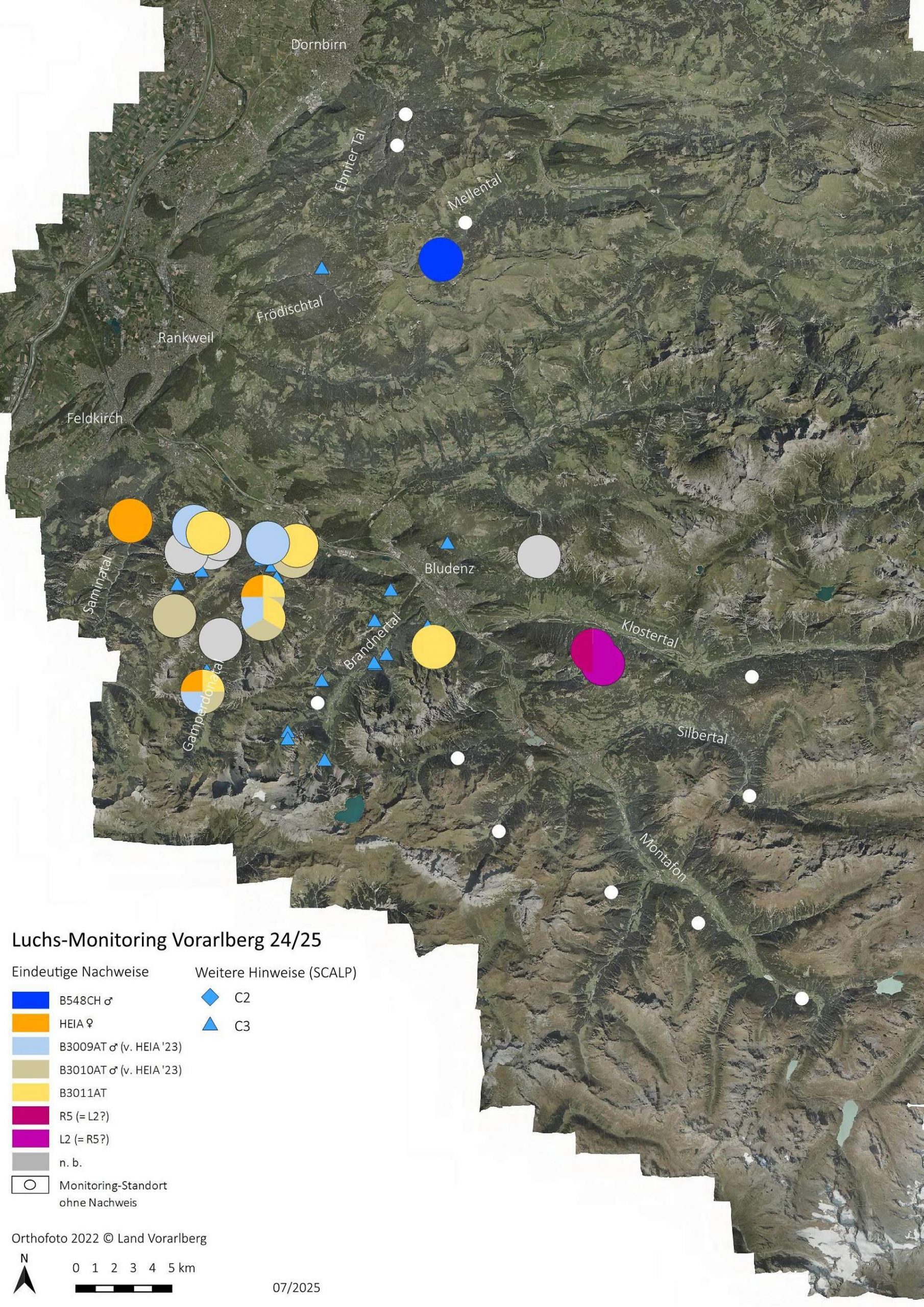 Zudem gebe es neue Hinweise auf Luchse in bisher nicht besiedelten Gebieten. So liegt etwa ein Foto eines Luchses aus dem Raum nördlich des Klostertals bei Bludenz vor. Auch aus anderen Regionen melden Jäger Nachweise.