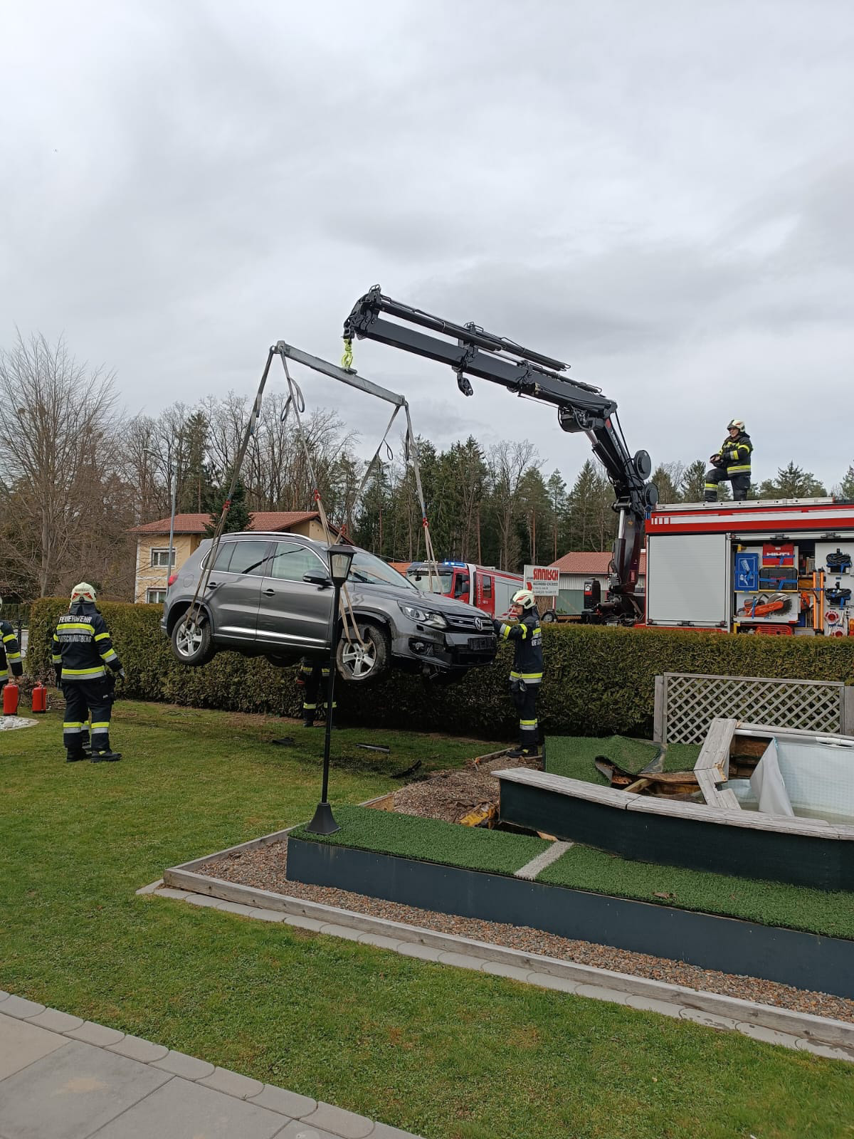 Sekundenschlaf: Pkw-Lenkerin krachte in Pool