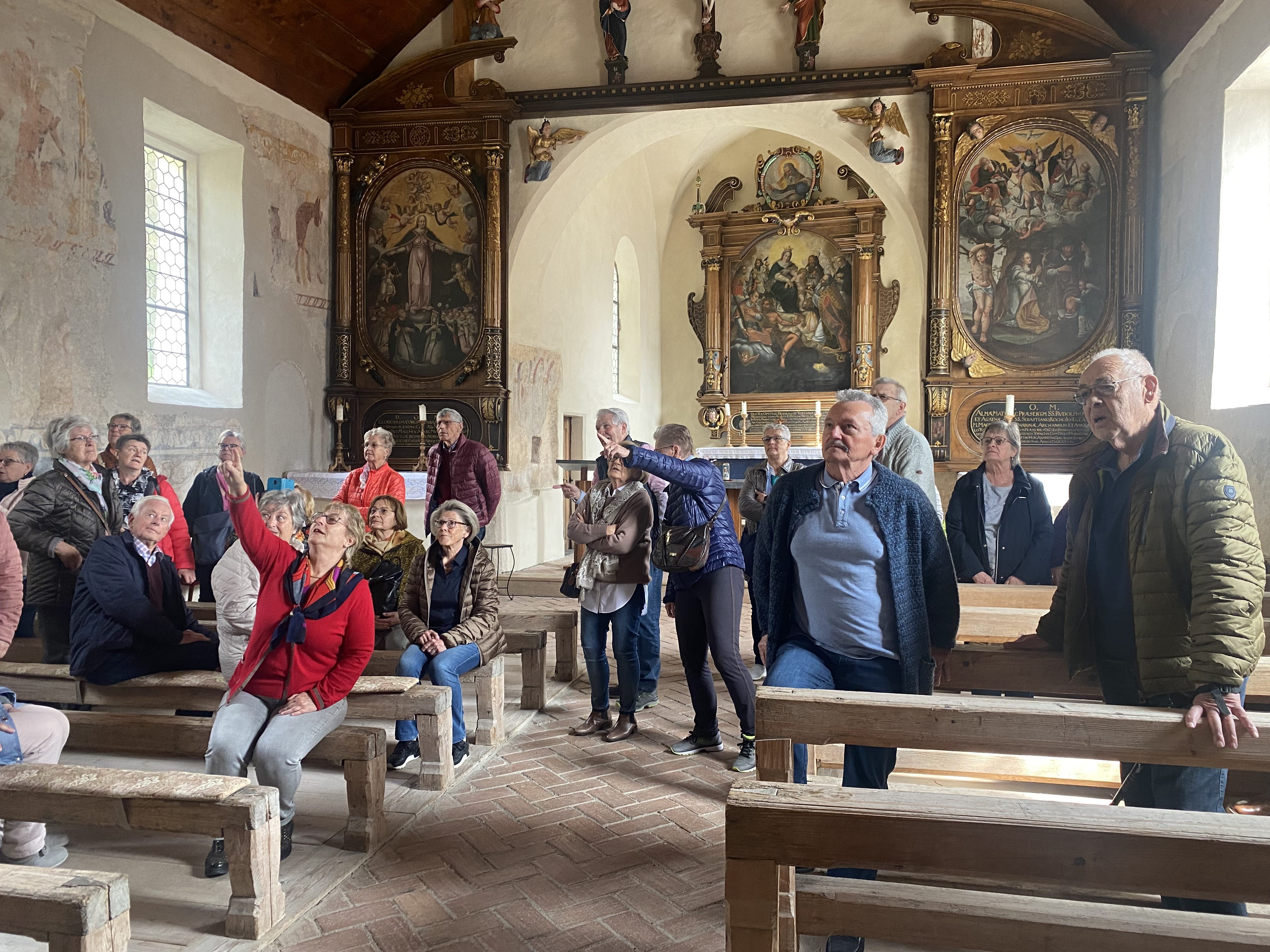 Im Walgau, dem „welschen Gau“, war das erste Ziel St. Nikolaus in Bludesch, die älteste Kirche Vorarlbergs. Ihre Anfänge reichen bis ins 5. Jahrhundert zurück, wie Obmann Hans-Dieter Grabher erklärte. Beeindruckend sind die freigelegten Fresken und hier besonders „Das jüngste Gericht“.