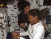 Nach dem gelungenen Andocken und der Öffnung der Verbindungsluken begrüßten die drei ISS-Besatzungsmitglieder, darunter der deutsche Astronaut Thomas Reiter, die Shuttle-Astronauten an Bord der Raumstation. Reiter soll in einer Woche mit der Shuttle-Besatzung zur Erde zurückkehren. Er wird dann nach einem halben Jahr im All von Sunita Williams abgelöst, die ebenfalls sechs Monate in der ISS bleiben wird. Williams ist erst die dritte Frau in einem Langzeiteinsatz im All.