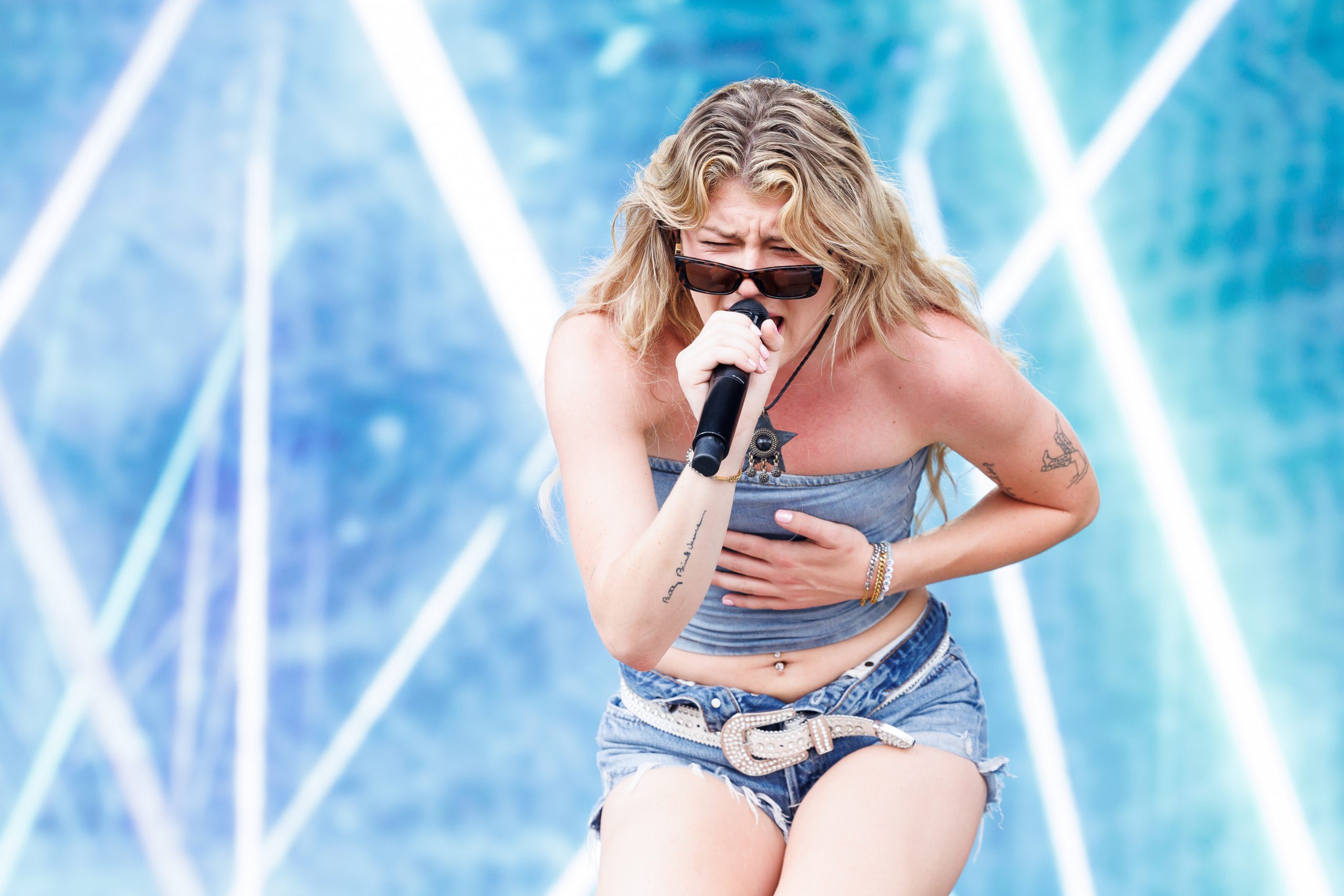 Lediglich die Space Stage wurde bespielt - und zwar in stilistisch gewaltiger Bandbreite. Eingeweiht wurde die Hauptbühne um 15 Uhr von Dasha, die gemütlichen, zeitweise durchaus rockigen Country-Pop samt Violin- und Banjo-Besetzung servierte. In Plauderlaune, hörbar angetan von den paar Hundert erschienenen Fans ("I love you") und weniger angetan von der brütenden Nachmittagshitze ("Oh my gosh, it's hot") - selbiger versuchten viele Festivalbesucherinnen und -besucher mit einem (Fuß-)Bad in der Traisen etwas entgegenzusetzen -, brachte die 24-jährige Amerikanerin freilich auch ihren Hit "Austin" dar, der im Vorjahr viral ging und ihr Leben komplett verändert habe, wie sie dem Publikum erzählte.