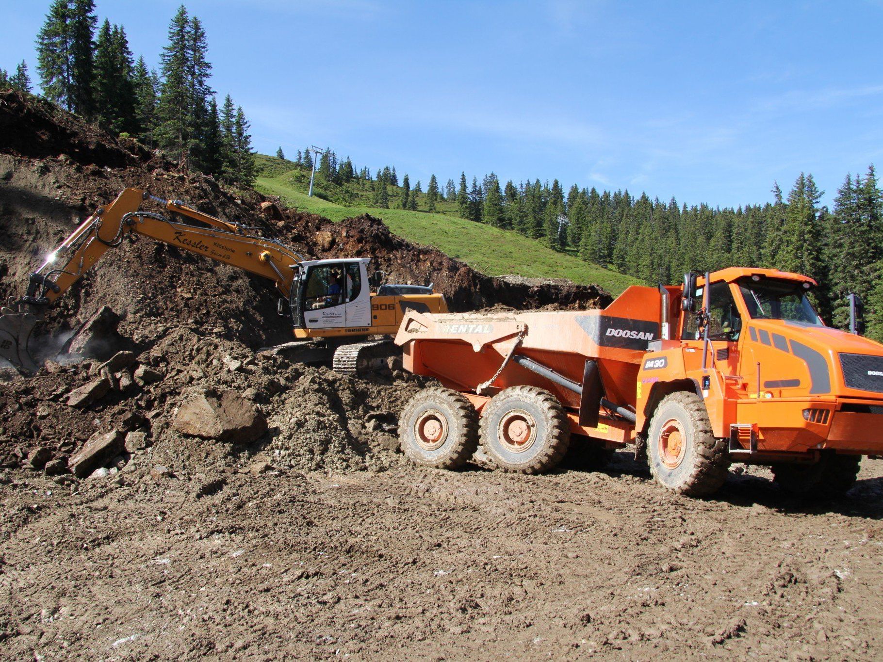 Binnen fünf Monaten soll die neue, sich über 2.000 Meter und neun Stützen erstreckende Seilbahn errichtet werden. Ein Kompletter Neubau ist sie jedoch nicht: Teile der Berg- und Talstation waren bereits bei der Floriade-Bahn auf der Gartenausstellung im niederländischen Venio in Betrieb. Auch bei den Bauarbeiten ist Nachhaltigkeit oberstes Gebot. So wird das Material wo immer möglich direkt am Berg aufbereitet, um unnötige Lkw-Fahrten im Tal zu vermeiden. Auch die Grasdecke wird während der Bauarbeiten gesondert gelagert und nach den Arbeiten wieder verlegt, erklärt Bauleiter Roman Sandrell.Schwierige Arbeitsbedingungen