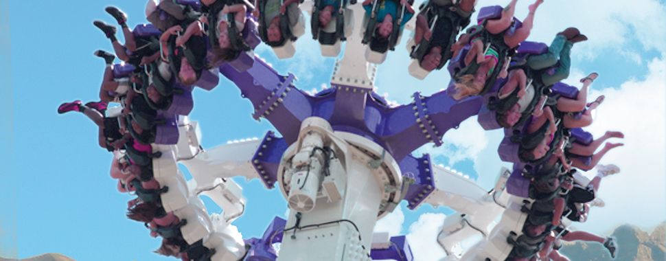 In dieser riesigen angetriebenen Zentrifuge verlieren die Fahrgäste den Boden unter den Füßen. Nur durch die entstehenden Kräfte werden die Fahrgäste an die Außenwände gedrückt und bleiben an diesen regelrecht kleben. Ein Fahrgeschäft für alle Fans von Aktion und Thrill!
