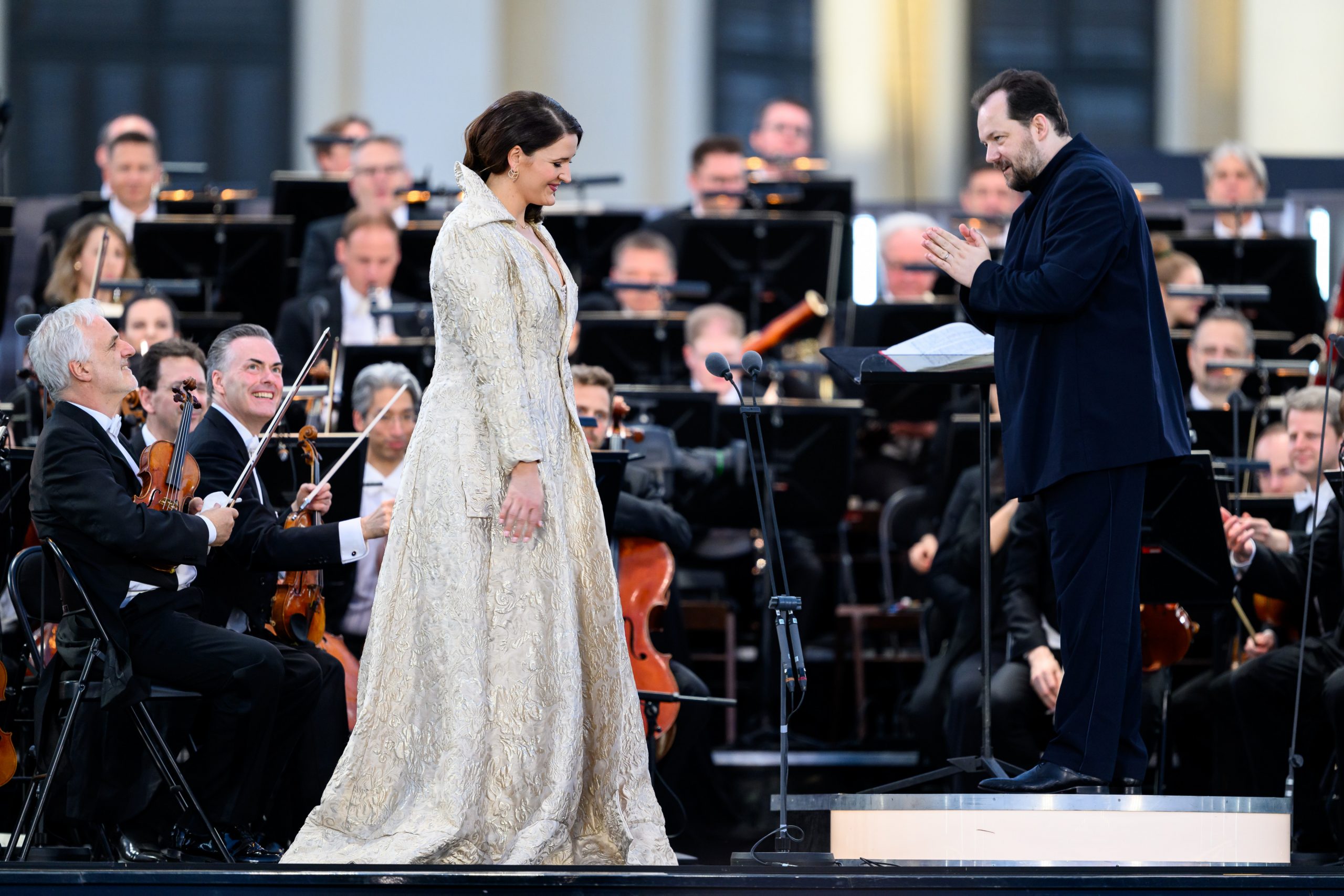 Der norwegische Shootingstar besänftigte mögliche Unwetter mit "Pace, pace mio Dio" - oder vielleicht auch mit ihrer Arie "Dich, teure Halle, grüß ich wieder" aus dem "Tannhäuser", sollte der Wettergott Wagnerianer sein. Bereits zum Auftakt des Abends unter Leitung des lettischen Maestros Andris Nelsons stand mit dem "Walkürenritt" eines der legendären Werke aus der Feder des Meisters, das akustisch im Freiluftambiente allerdings ein wenig zum akustischen Parforceritt geriet.