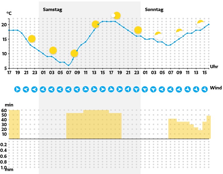 Am ersten Ferienwochenende präsentiert sich das Wetter am Samstag sonnig und angenehm warm. Es zeigen sich lediglich ein paar vereinzelte hohe Wolken, die erst gegen Abend dichter werden könnten.