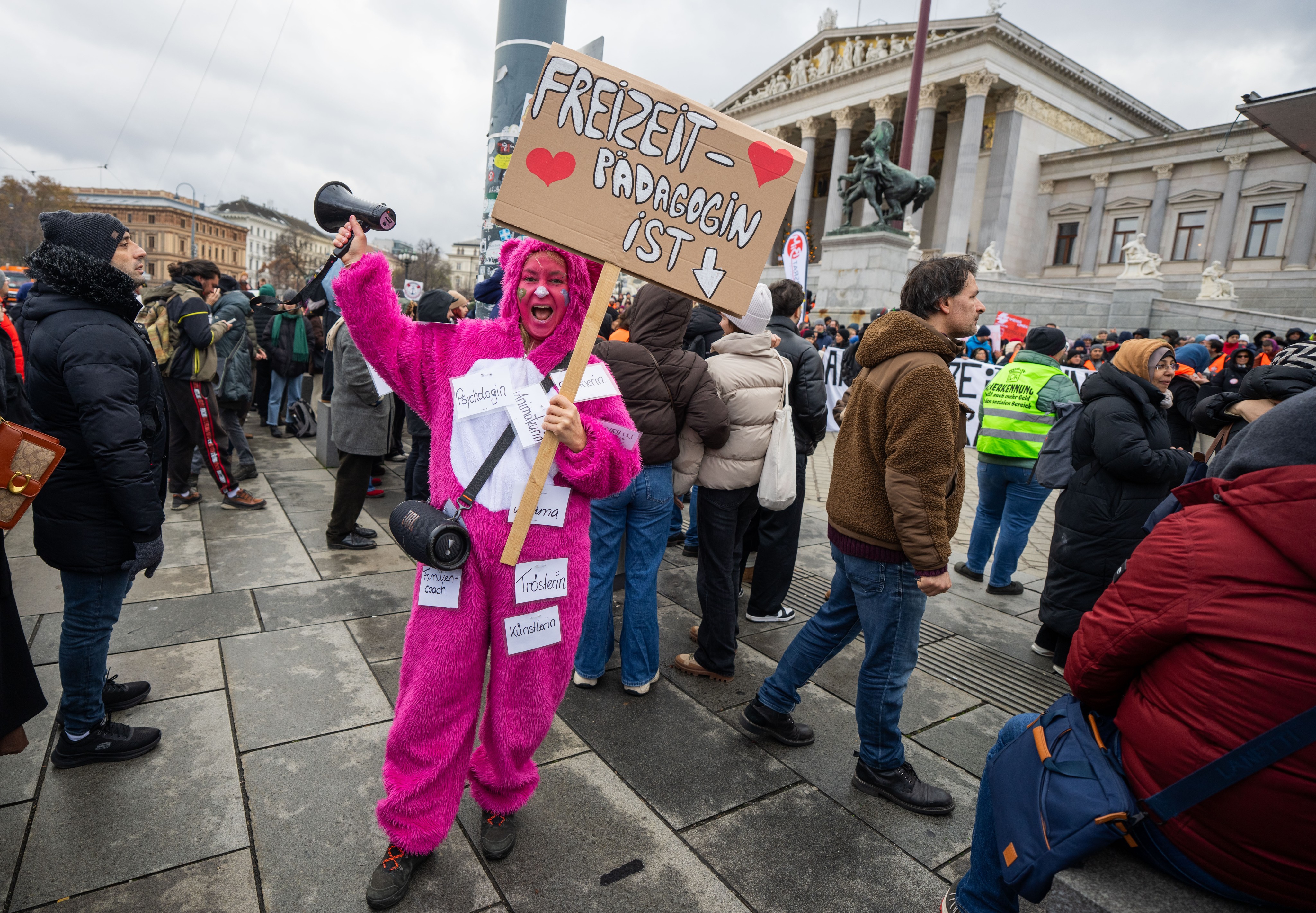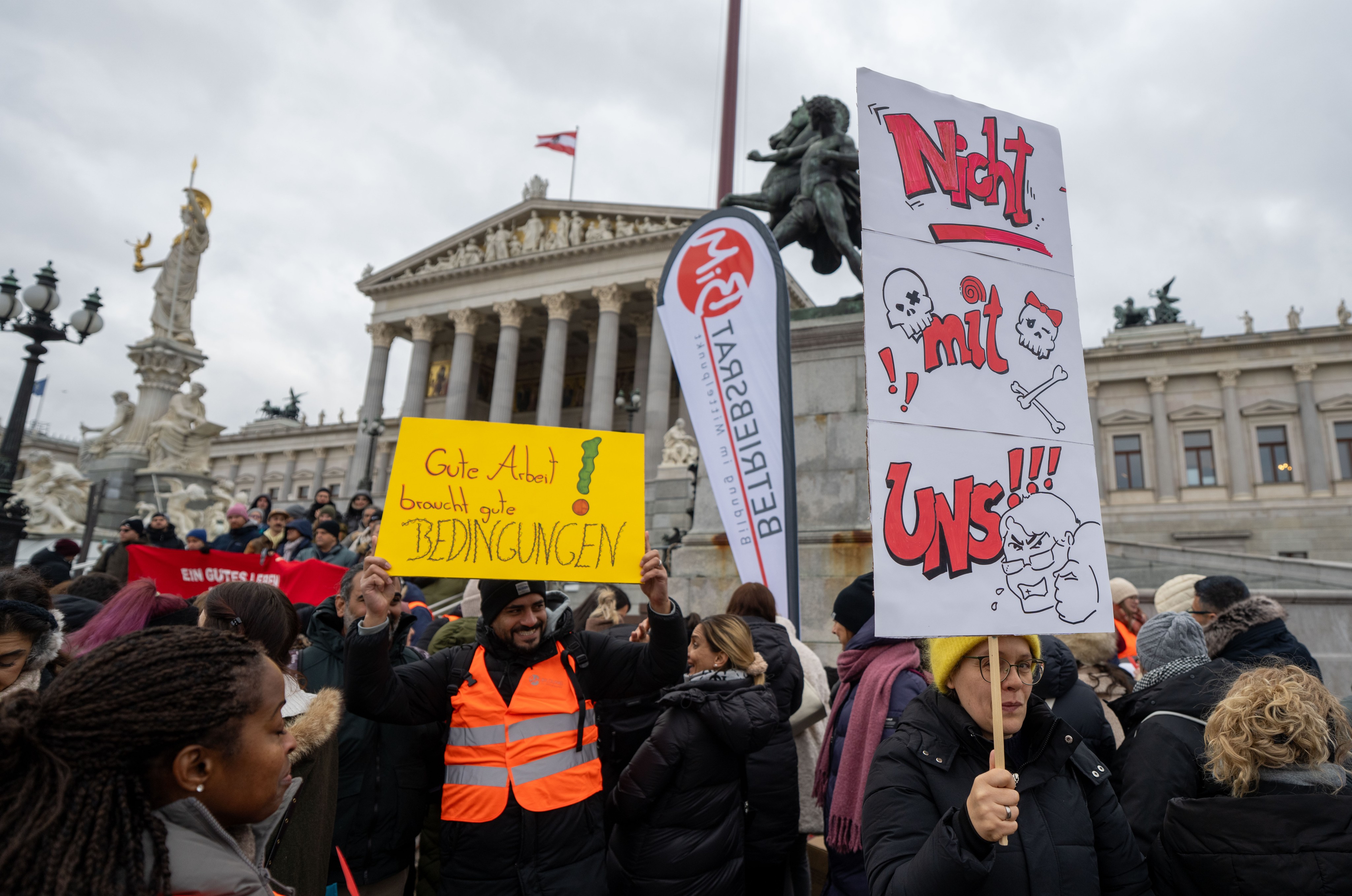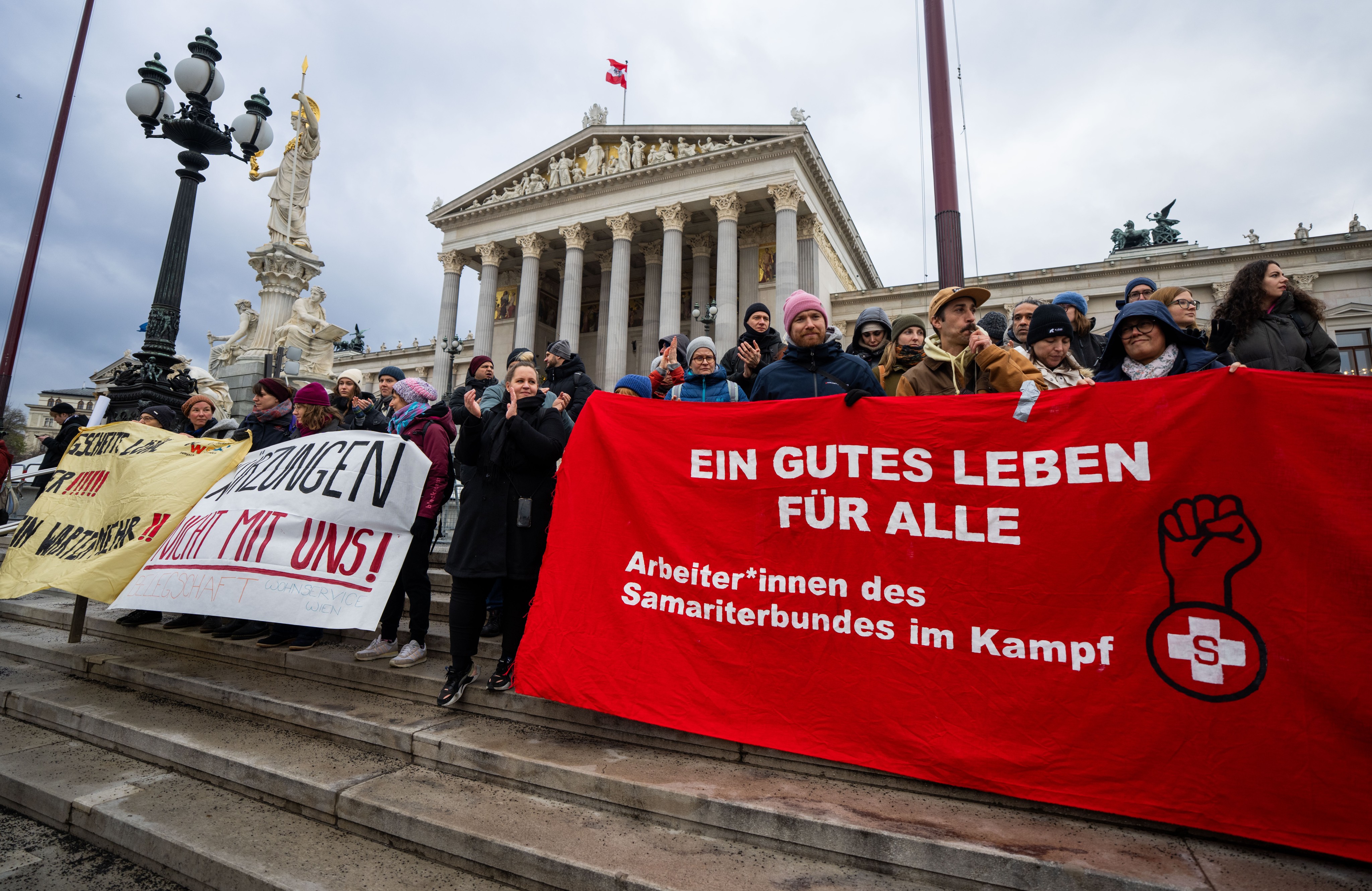Der Demozug, bestehend aus unter anderem Beschäftigten des Samariterbundes, der Suchthilfe oder des neunerhaus mündete, nachdem er vom Parlament zum Rathaus zog, beim Platz der Menschenrechte in einer Kundgebung der GPA. Bundesgeschäftsführer Mario Ferrari nannte das von der Arbeitgeberseite unterbreitete Angebot "absolut inakzeptabel". "Jedes Jahr müssen wir um unsere Gehaltserhöhung kämpfen, und das werden wir", stimmte er die rund 2.500 Menschen auf die kommende Verhandlungsrunde ein.