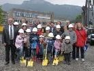 Vize-Bgm. Kurt Hämmerle begrüßte die Gäste im ehemaligen Feuerwehrhaus und wusste über einige Besonderheiten des Projekts zu berichten. Unter anderem hob er die zentrale Lage mit 300 Parkplätzen in nächster Nähe hervor und unterstrich die Vielfältigkeit der angebotenen Nutzungsmöglichkeiten. Architekt DI Konrad Hänsler gab Einblick in die planerischen und baulichen Aspekte und bezeichnete das Foyer als Herzstück des Projekts. Von dort werden nämlich alle anderen Räumlichkeiten, in denen Sport und Bewegung, Bildung und kulturelles Leben ihren Platz finden, perfekt erschlossen. Gemäß dem Grundsatzbeschluss der Gemeinde wird das KOM in Passivhausstandard errichtet, mit der Realisierung einer Biomassenahwärmeanlage wird zusätzlich dem Umweltgedanken Rechnung getragen. Die zukünftigen Nutzer des Gebäudes, darunter auch Kinder vom Kinderhaus und Schüler der Hauptschule, schritten trotz regnerischem Wetter mit Freude zum Spatenstich für dieses Großprojekt, das zweifelsohne viele positive Impulse für die Dorfgemeinschaft bringen wird.