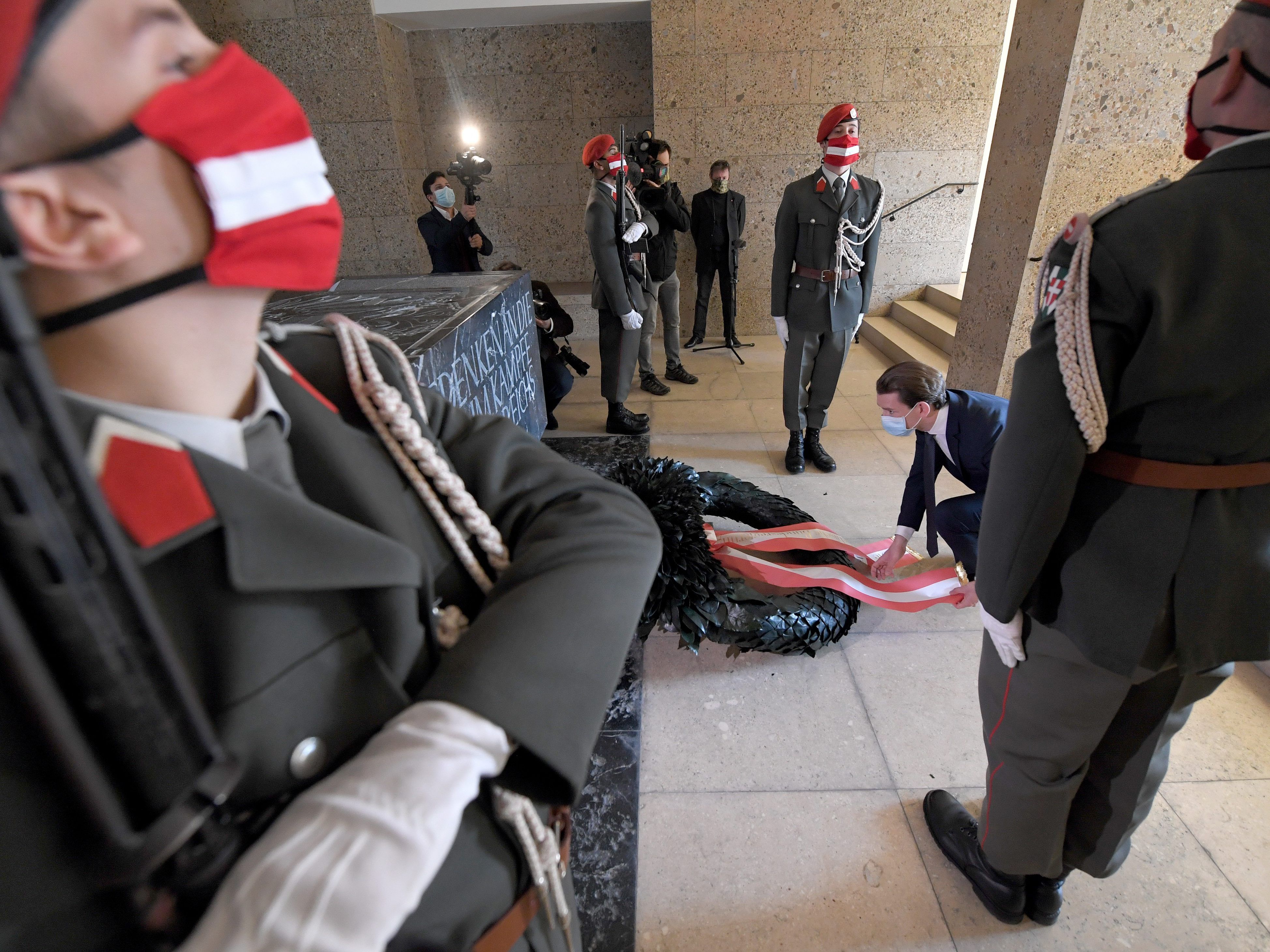 75 Jahre Zweite Republik: Jubiläumsgedenken mit rot-weiß-rotem Mundschutz