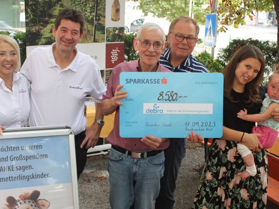 20.09.2023 Quadro Ernst konnte einen Scheck in Höhe von 8580 Euro an Werner Benzer übergeben.